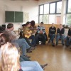 Um dies zu unterstützen hatte sich Franco bereit erklärt, die Schüler des Musikkurses von Herrn Baumgärtner am Mittwochnachmittag zu besuchen, um ihnen anhand einiger Beispiele die geschichtliche Entwicklung der Gitarrenmusik zu erläutern.
