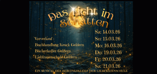 Der Countdown für unser Musical "Das Licht im Schatten" läuft. Sichert euch Tickets für eine der sechs Veranstaltungen. Oder macht anderen eine Freude mit einem Ticket. Es lohnt sich.