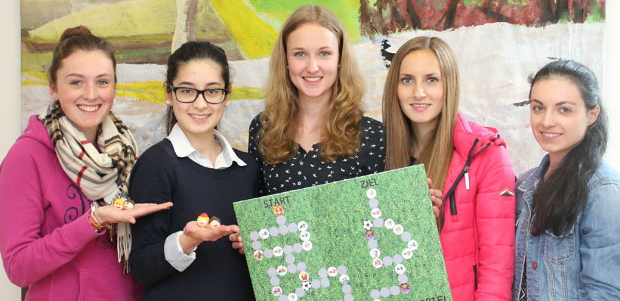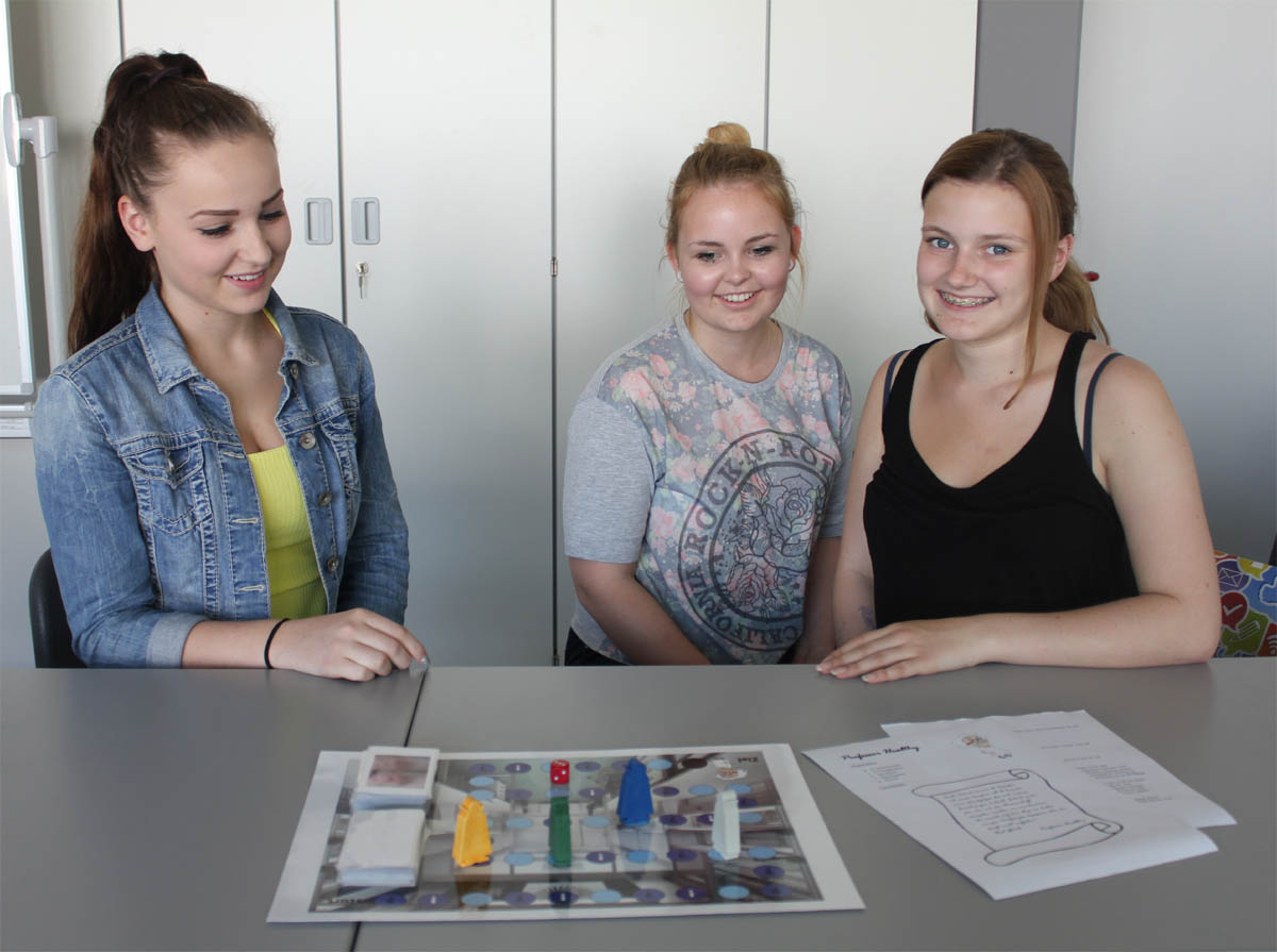 Geschaffen wurden sie von fünf Schülerinnen aus dem Grundkurs Gesundheitswissenschaft der AH/11. Dort lautete die Aufgabe in einem Unterrichtsprojekt, ein Spiel zu entwickeln, das auf kreative Art die Gesundheit im Blick hat. Bei dem Würfelspiel stehen Tim, Anna, Ben und Lena dann vor allerlei Entscheidungen, die den Body-Mass-Index verändern können. Verkürzt ausgedrückt: „Gehe ich mal wieder Fast-Food essen oder ziehe ich es vor, im Fitnessstudio für meinen Körper etwas zu tun?“
