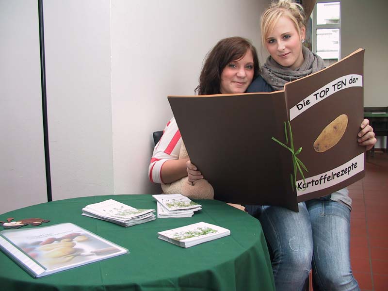 „Sieglinde, Annabelle oder wie sie auch heißen- es ist die Kartoffel, in die wir beißen!“ Unter diesem Motto präsentierten wir, die FH12E, am 6. Oktober unsere Ausstellung über Kartoffeln im Rahmen der Geschmackstage 2010. Unsere Lehrerin für Versorgung und Betreuung, Frau van Beek-Borchert, hatte uns die Teilnahme an den vom Bundesministerium für Ernährung, Landwirtschaft und Verbraucherschutz initiierten „Geschmackstagen 2010“ vorgeschlagen und überzeugte uns, an ihnen teilzunehmen. Regionale und saisonale Lebensmittel sollten durch die Geschmacktage wieder neu in den Blick der Öffentlichkeit rücken und eine gesunde Esskultur gefördert werden.