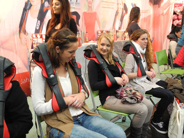 Durch einfallsreiche Hindernis-Parcours, aufschlussreiche Expertenansprachen, z. B. zur Kommunikation mit demenziell erkrankten Menschen, und exklusive Hilfsmittel wie z. B. Roboterarme oder Therapiehunde, wurde den Besuchern die Möglichkeit gegeben, selbst zu erleben, wie sich vor allem körperliche Einschränkungen anfühlen können und welche Möglichkeiten es gibt, die Lebensqualität individuell zu verbessern. Besonders gefiel es den meisten von uns, Hilfsmittel selbst auszuprobieren und sich mit Menschen zu unterhalten, die entsprechende Hilfsmittel im Alltag verwenden und ihnen Fragen zu stellen, die sie geduldig beantworteten. Wir alle konnten viel von der Reha-Care mitnehmen und das nicht nur im praktischen Sinne in Form von vollen Taschen mit Infobroschüren, Kugelschreibern, Handbüchern des LVR oder – wie im Falle einer Mitschülerin – mit einem Massagekissen zur Förderung des eigenen Wohlbefindens und zur Erhaltung der Rückengesundheit von Pflegenden.