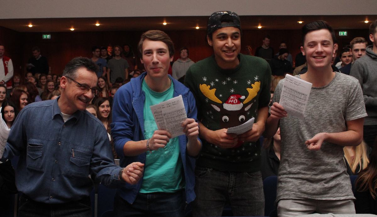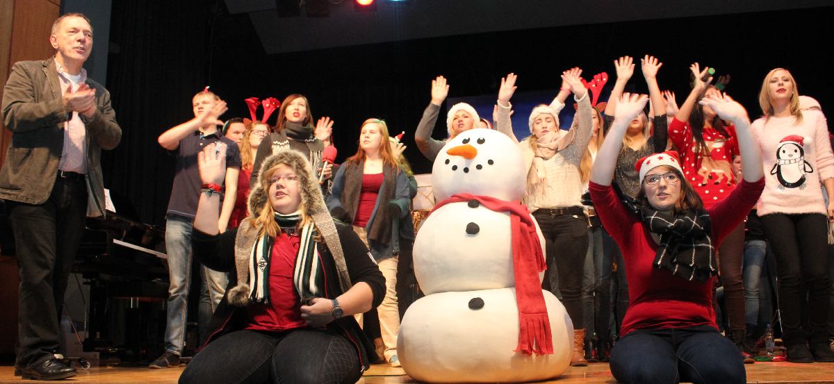 Der Applaus war den angehenden Erzieherinnen und Erziehern daher ebenso gewiss wie den zahlreichen Musikern und Sängerinnen, die Herr Baumgärtner in den zurückliegenden Wochen fit gemacht hatte, um zum wiederholten Male auf musikalisch schwungvoll-lustige Weise Vorfreude auf die Ferien und natürlich das Weihnachtsfest zu machen.