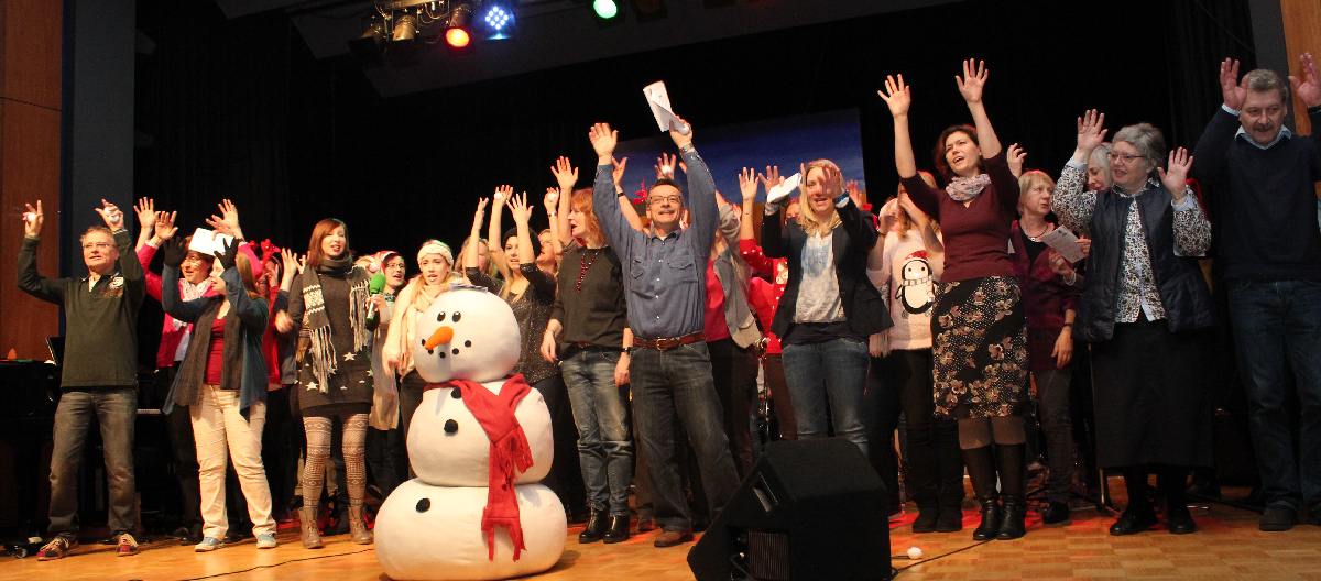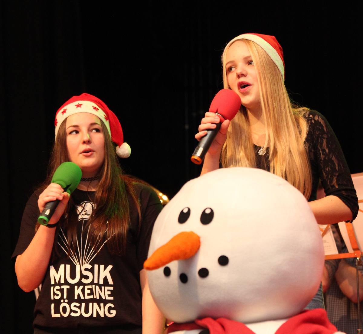 Ganz anders war die Situation 2015: Warme Temperaturen im Dezember von weit mehr als 10 Grad ließen keinen Gedanken an Frost, geschweige denn an Schnee aufkommen. Auf einen Schneemann musste beim Adventssingen, das wie jedes Jahr souverän von Musiklehrer Baumgärtner moderiert wurde, dennoch niemand verzichten. Möglich machte das die FSP/O1, die ihren Sing-Tanz-Mitmach-Beitrag mit einem eigens genähten, überaus freundlich dreinschauenden Schneemann bereicherte.