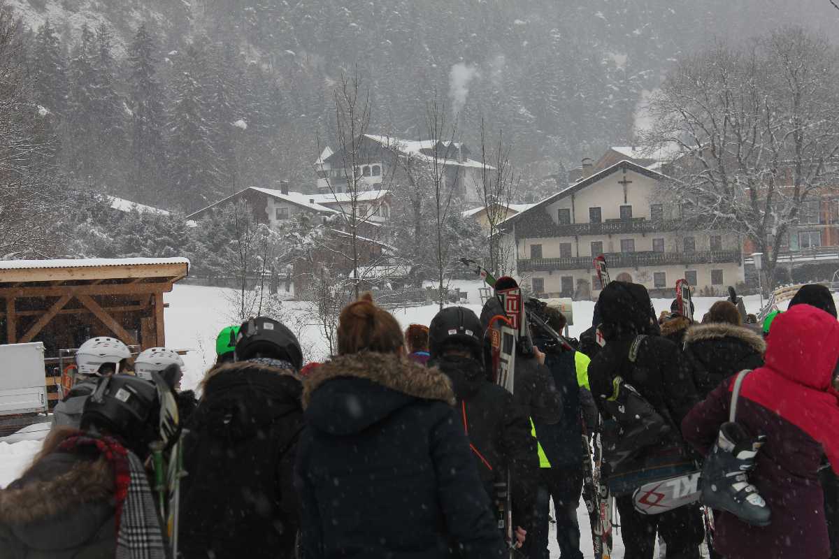 Heidewitzka, war das schön! Schon die Begrüßung unserer 27 angehenden Freizeitsportleiter aus der AH/12F und der 54 Neuntklässlerinnen der Liebfrauenrealschule mitsamt Skilehrerinnen und Skilehrern hätte nicht passender sein können, denn im Hochzillertal fielen sanft-lieblich die weißen Schneeflocken vom wolkenverhangenen Himmel.