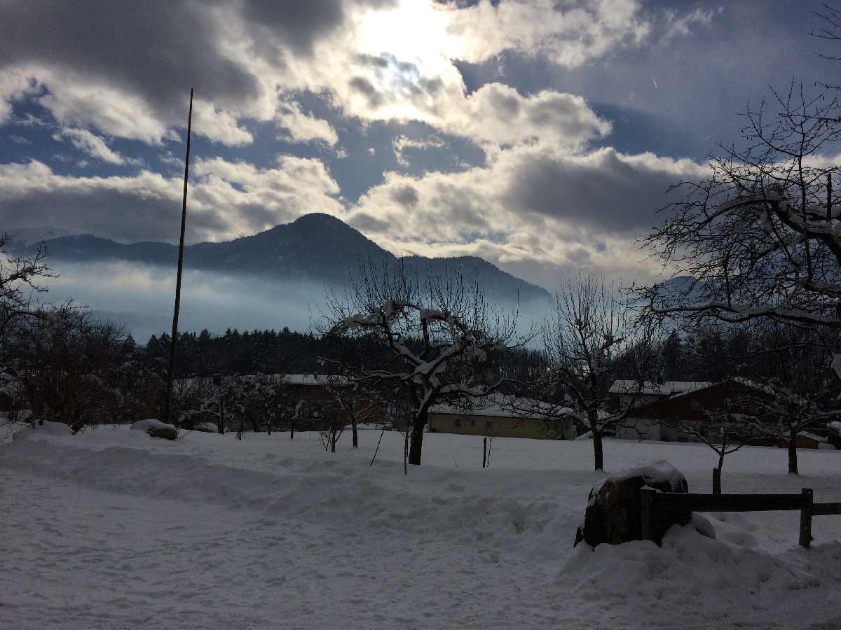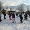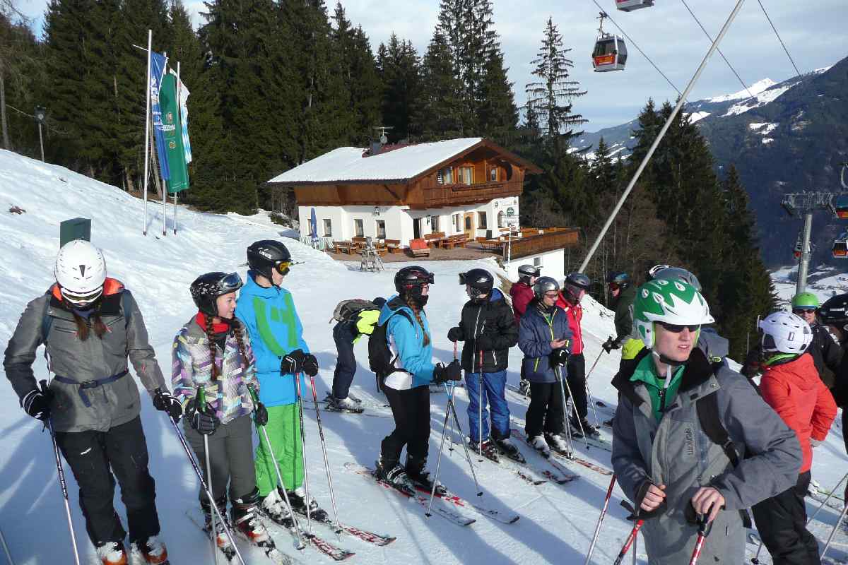 Nachmittags wurde es dann erstmals ernst: Das Wetter klarte auf und die allermeisten standen am seichten Hügel hinter der Unterkunft erstmals auf den langen Brettern – wahrlich ein ganz neues Feeling! Doch das war gut so: So konnten die Anfänger in ihrer Skikursgruppe schon vor dem ersten Tag im richtigen Skigebiet Kaltenbach/Hochfügen mit Hilfe bedacht ausgewählter Übungen ein erstes Gefühl für den Ski entwickeln und sich geschickt auf unterschiedlichem Weg den seichten Hang hinab- und wieder hinaufbewegen. Die Fortgeschrittenen hatten das natürlich nicht mehr nötig! Sie vergnügten sich anderweitig im Schnee.