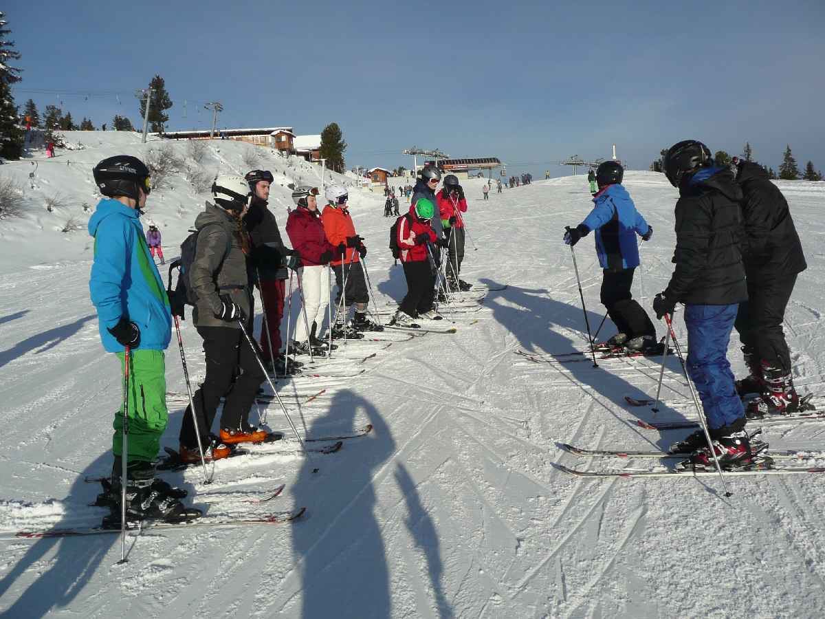 Der Tagesablauf war wohl durchdacht. Morgens leiteten unsere schuleigenen Skilehrer immer die intensiven Kurse, die je nach Kenntnisstand der Schülerinnen und Schüler zusammengesetzt waren. Viele tummelten sich daher erst einmal auf leichten blauen Pisten herum und mussten neben aller Technik (z. B. Körperhaltung, Belastung, Schwerpunktverlagerung, Stockeinsatz) auch noch den korrekten Umgang mit Teller- und Ankerlift erlernen. Die fortgeschrittenen Gruppen zog es aber schnell auf die vielen roten und auch schwarzen Pisten, die durch eine Vielzahl unterschiedlicher Sessel- und Schlepplifte vernetzt waren.