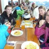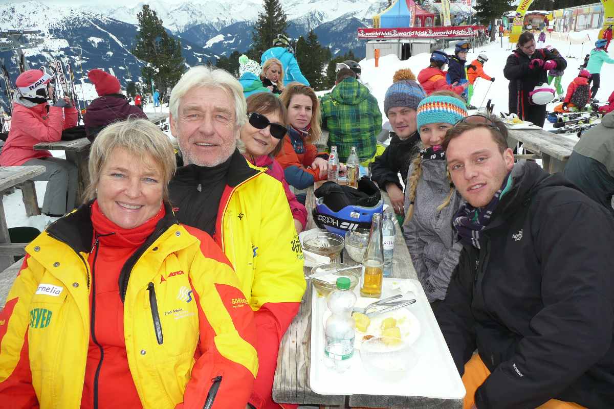 Mittags trafen sich dann alle wieder an der Bergstation um ein kleines Menü einzunehmen. Nachmittags ging dann der Gruppenunterricht weiter oder freies Fahren in kleinen Gruppen auf ausgewählten Pisten stand auf dem Programm. Es dauerte nicht lange, dann hatten auch alle Anfänger den Bogen heraus und trieben sich auf schwierigeren Pisten herum.
