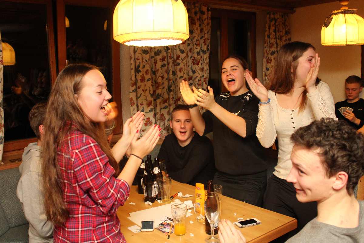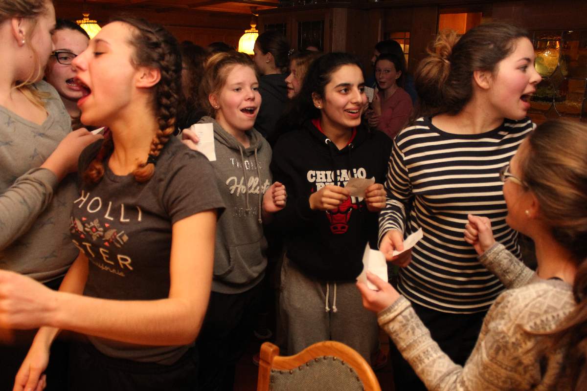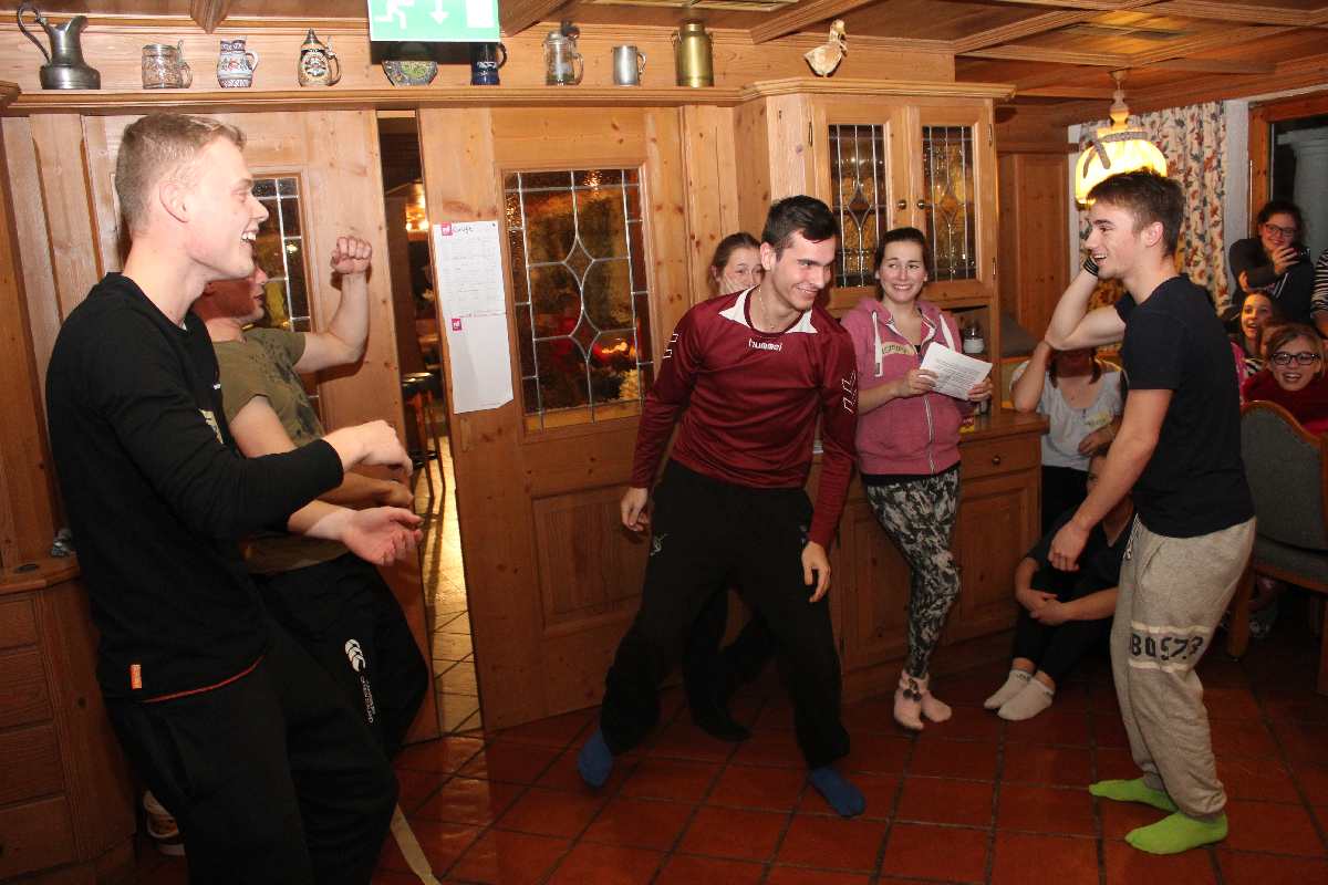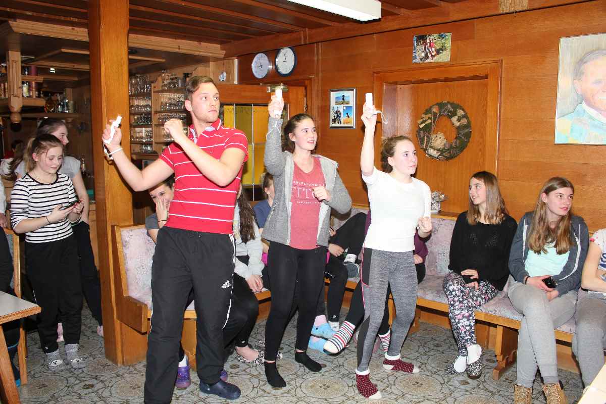 Wie wäre es da mit zünftigem Après-Ski? Der durfte natürlich nicht fehlen. Die Postalm mit entsprechend fetziger Musik lud dazu ein. Per Polonaise und anderen diversen Tänzen rockte die Liebfrauenschule da die Hütte. Und auch abends gab es in unserem Gasthof kurzweilige Unterhaltung mit allerlei diversen Spielchen.