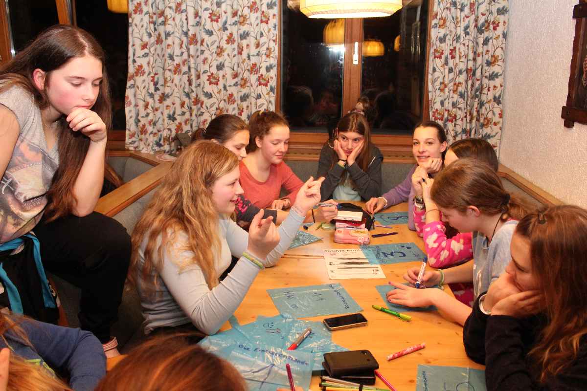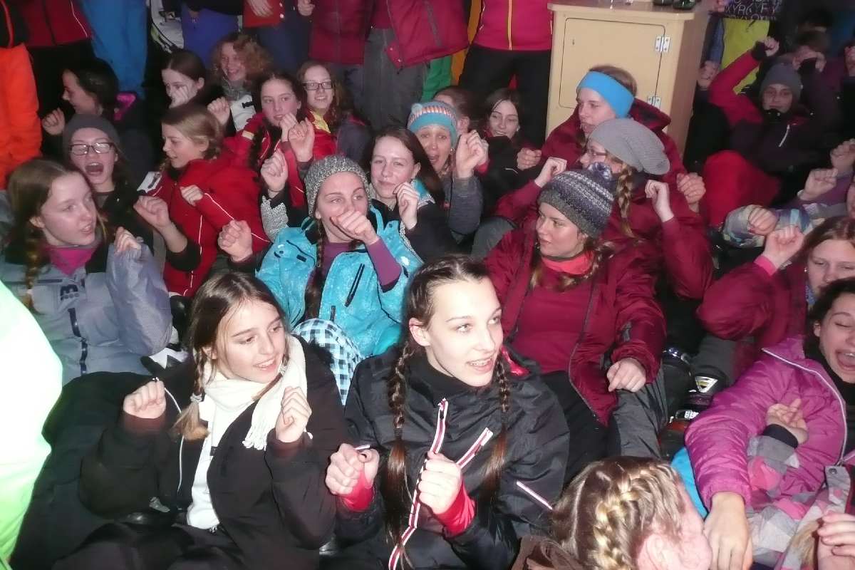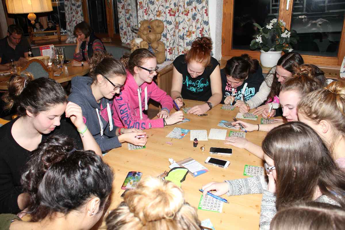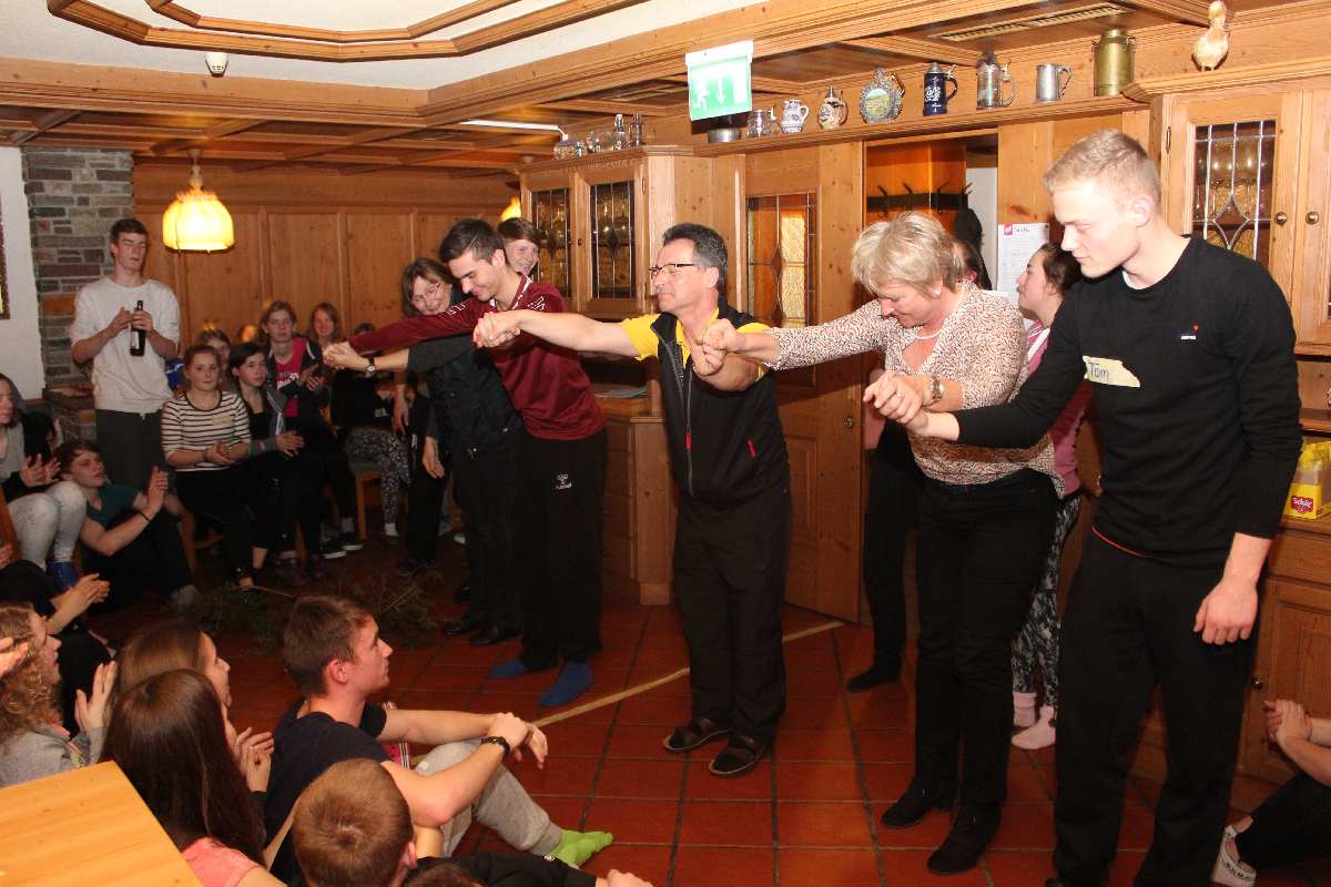 Wie wäre es da mit zünftigem Après-Ski? Der durfte natürlich nicht fehlen. Die Postalm mit entsprechend fetziger Musik lud dazu ein. Per Polonaise und anderen diversen Tänzen rockte die Liebfrauenschule da die Hütte. Und auch abends gab es in unserem Gasthof kurzweilige Unterhaltung mit allerlei diversen Spielchen.