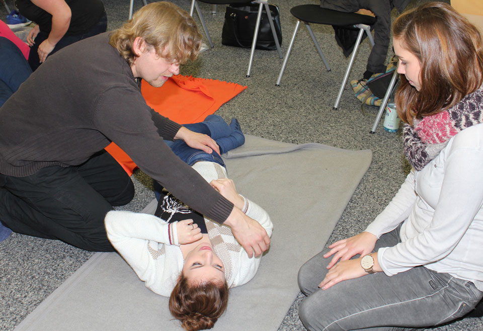 Diesem Wunsch konnte nun in der HEPB entsprochen werden. Unter Leitung von Herrn Vermöhlen erwarben die Berufspraktikant/innen in einem dreitägigen Grundkurs vertiefende Kenntnisse und Kompetenzen und obendrein das begehrte und in den Pflegeberufen angesehene Zertifikat Grundkurs Kinaesthetics.