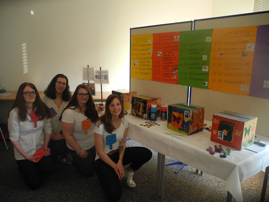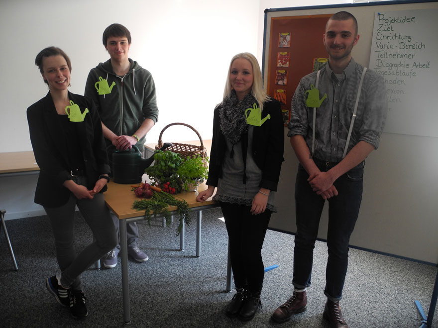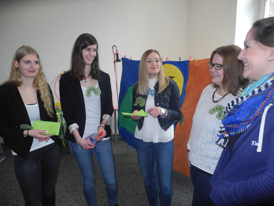 Ebenso eindrucksvoll stellten vier weitere Kleingruppen ihre Projekte vor, die sie im März im Rahmen einer Projektwoche in Einrichtungen der Behindertenhilfe durchgeführt hatten. Doch bis zu diesem Tag war es ein langer Weg. In mehreren außerschulischen Treffen wurden Handlungsbedarfe erkannt, Ressourcen und Defizite der beteiligten Förderschüler/innen, Bewohner/innen und Beschäftigten erfasst und beschrieben, Ziele abgeleitet, dazu passende Methoden und Materialien überlegt u.v.m. Dies alles ging natürlich nicht, ohne sich ebenso in die Fachliteratur einzulesen.