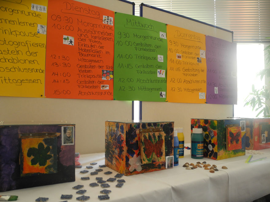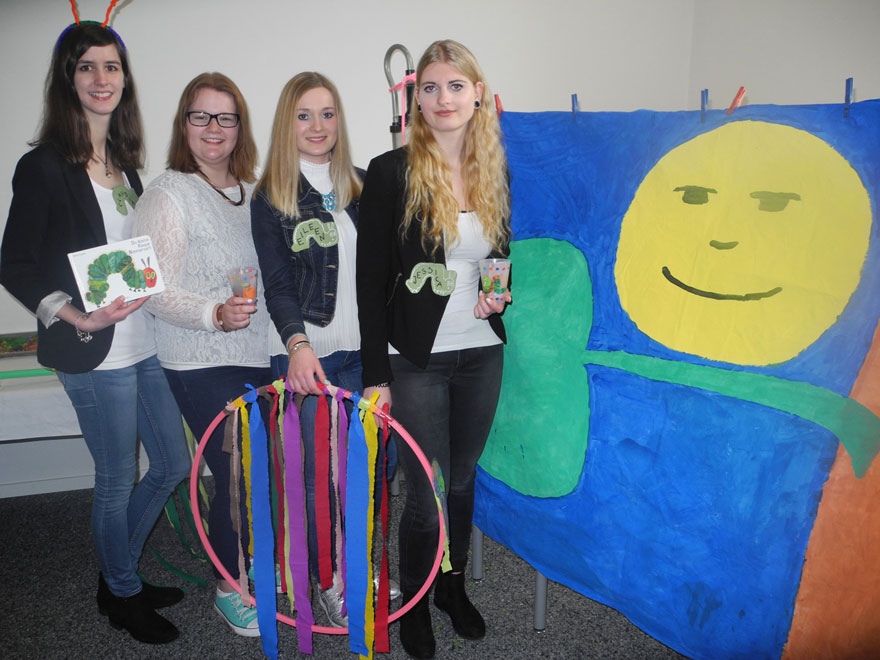 Höhepunkt war natürlich die Durchführung des jeweiligen Projektes in der entsprechenden Einrichtung. Hierzu zählten die Kindertagesstätte Am Broekhof in Kevelaer, die VaRiA-Gruppe der Werkstatt für Menschen mit Behinderungen Haus Freudenberg, die Wohnanlage St. Bernardin in Sonsbeck-Hamb sowie die Don-Bosco-Förderschule in Geldern, in der gleich zwei Projekte durchgeführt wurden. Entsprechend der Vielfalt der späteren Einsatzorte für Heilerziehungspfleger/innen richteten sich die Angebote an sehr verschiedene Altersgruppen: vom Kleinkind, über den Jugendlichen bis zum Senior. Ebenso vielfältig waren die Ziele, die mit den Projekten erreicht werden sollten, z. B. Teamfähigkeit, Konzentration, Selbstwirksamkeit, Selbstwertgefühl oder auch der Erhalt von Fähigkeiten zur Freizeitgestaltung.
