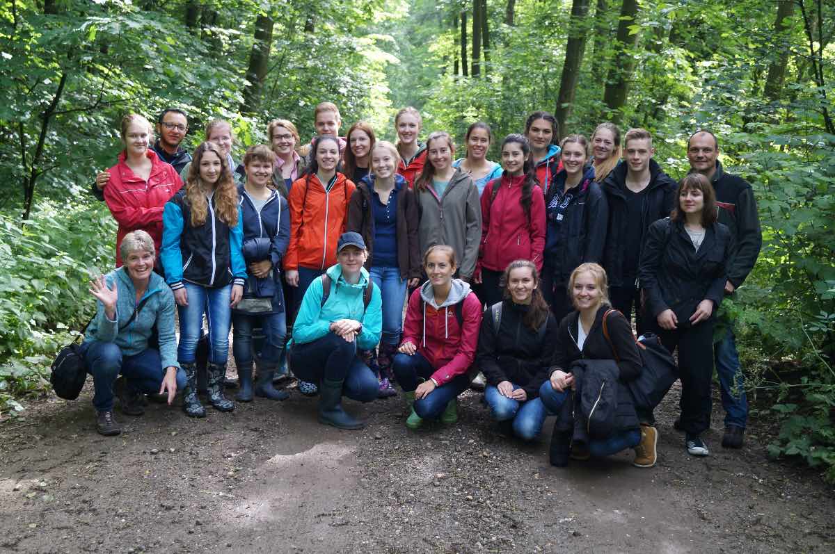 Donnerstagmorgen, 16. Juni, gegen 7 Uhr in der Frühe. Gut 20 Schülerinnen und Schüler der Parallelklasse AH/12E durchstreifen auf leisen Sohlen den Winkelschen Busch bei Hamb. Sie haben ihre Exkursion schon zu so früher Zeit gestartet, um in der Stille des Waldes das Konzert der Vögel zu hören und zu erkunden.