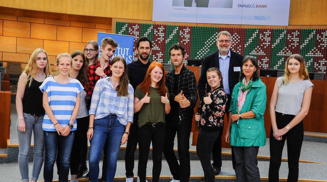 So viel Einsatz hat sich tatsächlich ausgezahlt: mit 78,2 Punkten von 80 Punkten hat der Französischkurs der AH/11 in seiner Kategorie (Niveau 1) den 2. Platz erlangt und durfte daher zur Preisverleihung im Landtag in Düsseldorf am 2. Juni reisen und das abends sich anschließende exklusive Konzert der französischen Elektro-Pop-Band AaRON im ZAKK in Düsseldorf besuchen.