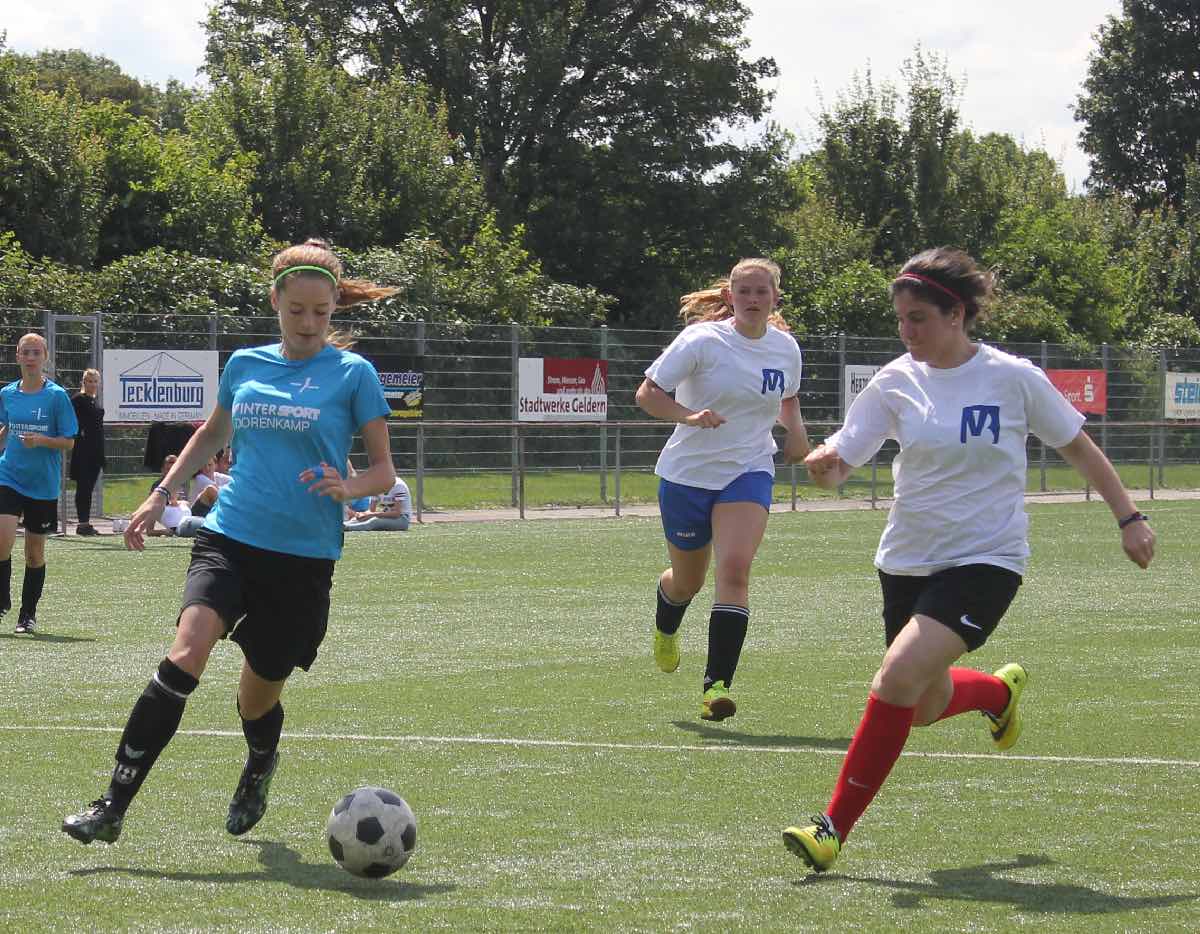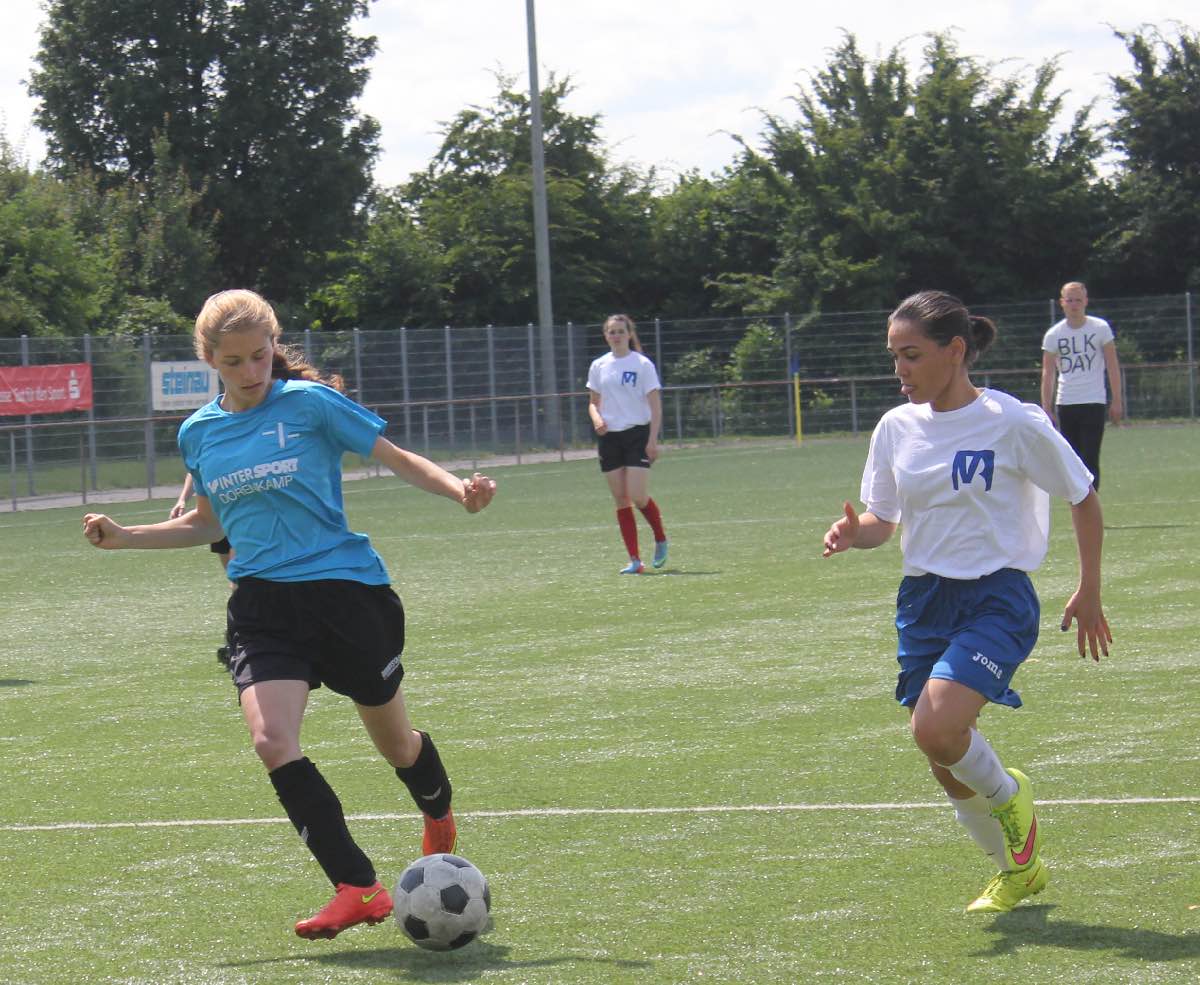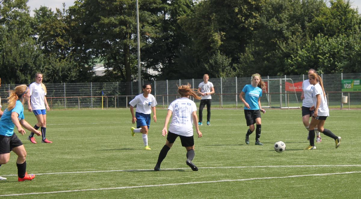 Für Furore sorgten am Mittwoch vor den Sommerferien unsere Fußballerinnen. Unsere Kreismeisterinnen des Schuljahres 2015/2016 hatten sich für ihr Freundschaftsspiel einen wahrhaft namhaften Gegner ausgesucht: die Stadtmeisterinnen aus Krefeld vom Vera-Beckers-Berufskolleg. Das Match fand auf dem Kunstrasenplatz des GSV Geldern statt.