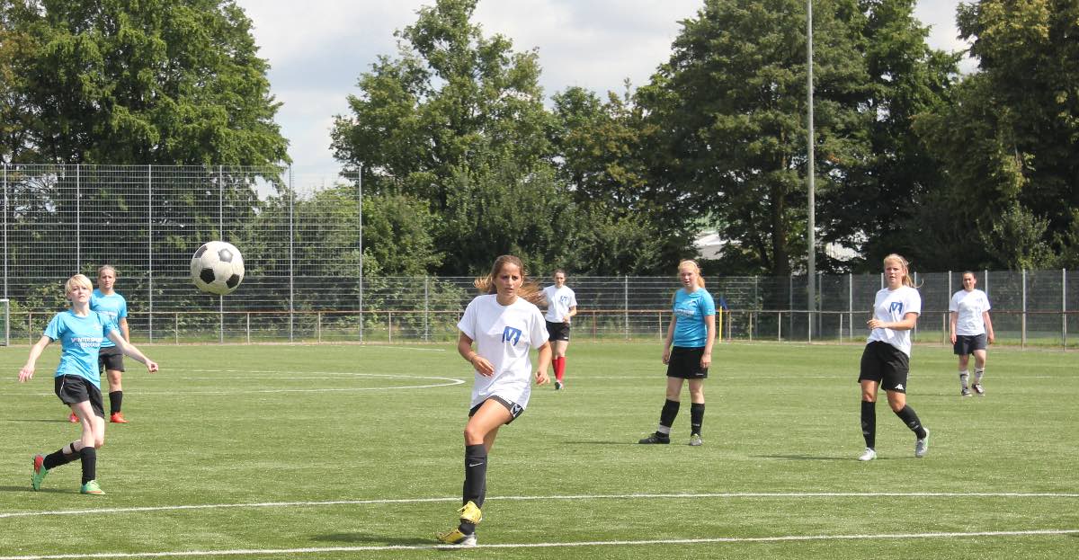 Beide Mannschaften traten ersatzgeschwächt an, doch von Beginn an machte eigentlich nur ein Team ordentlich Dampf: unsere Liebfrauenschülerinnen, die von unserem Sportlehrer Stefan Linssen gecoacht wurden. Vor allem in der ersten Halbzeit drückten die Geldernerinnen die Gegnerinnen mit cleverem Kombinationsspiel in deren eigene Hälfte zurück und ließen den Krefelderinnen nur selten die Chance, gefährlich über die Mittellinie zu kommen. Dennoch dauerte es bis zur 21. Minute, bis der erste Treffer fiel. Samira Berns versenkte als erste das runde Leder im Krefelder Kasten. Noch vor der Pause erhöhte Lena van de Laak auf 2:0.
