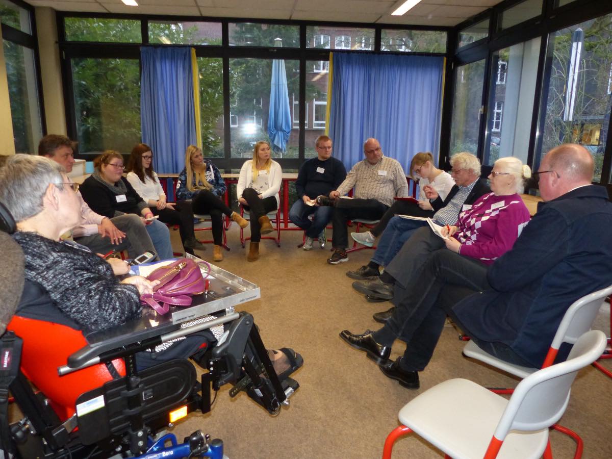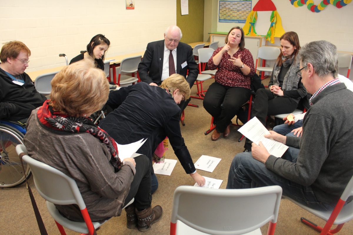 Dafür hatten Martin Merkens und Hildegard Weiß vom Referat Seelsorge für Menschen mit Behinderung im Bischöflichen Generalvikariat Sorge getragen. Bewusst offen wurde das Forum gehalten, jeder Teilnehmer hatte die Möglichkeit, nicht nur die zu besprechenden Themen mitzubestimmen, sondern auch jederzeit in jedes Thema einsteigen zu können. „Sie sind“, betonte Merkens, „jeder ein Experte für etwas. Jeder hier ist wichtig, neue Ideen sind erwünscht.“ Nicht nur die Ergebnisse einer Diskussion seien entscheidend, sondern insbesondere das Zusammentreffen der unterschiedlichen Menschen. Ein Umstand, der auch Dieter Holthaus nach Geldern geführt hatte. Der Behindertenbeauftragte der Stadt Dinslaken, der selbst eine starke Seh-Beeinträchtigung hat, erklärte: „Ich halte es für sehr wichtig, dass sich hier die Experten austauschen, aufeinander zugehen und Hemmnisse überwinden.“