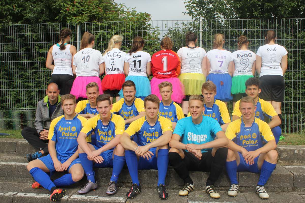 Freuen konnten sich schließlich auch noch die Spielerinnen des Kardinal-von-Galen-Gymnasiums. Sie wurden als Mannschaft mit dem ausgefallensten Dress ausgezeichnet: Logo, mit Tüllröckchen konnten sie auf dem Spielfeld keine Chance haben gegen die starke Konkurrenz aus Geldern!