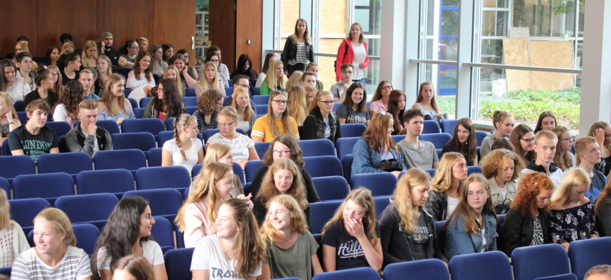 Am Mittwoch nach den Sommerferien wurden mehr als 300 Schülerinnen und Schüler neu in die Liebfrauenschule aufgenommen. Der ersten Begrüßung in der Aula schloss sich ein erstes Kennenlernen in allen neuen Klassen (wie im ersten Foto unten im Beruflichen Gymnasium bei den angehenden Freizeitsportleitern) mit der Verteilung des Stundenplanes und der Schulbücher (Foto oben) an. Bei einem Rundgang durch das Schulgebäude konnten die neuen Schüler/innen die vielfältigen Räumlichkeiten unseres Berufskollegs kennenlernen.