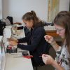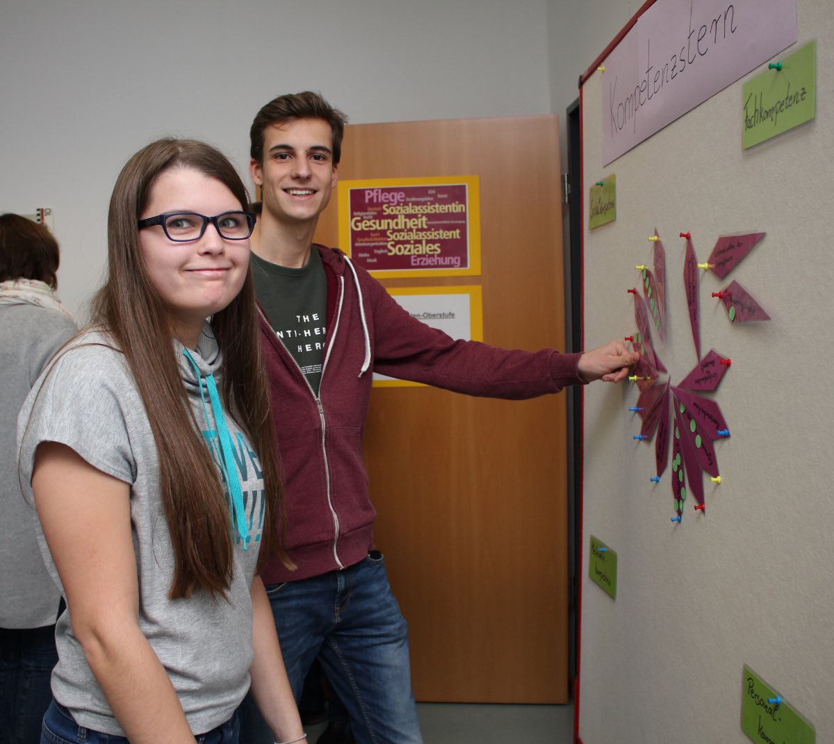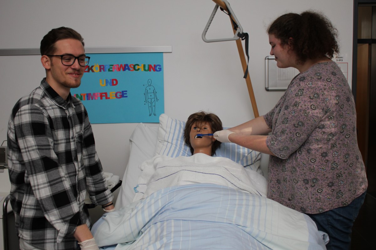 Eine gute Möglichkeit, die vielen Neuerungen der vergangenen Jahrzehnte zu sehen, boten die von Schülern geführten Rundgänge, die vorbei an Fachräumen führten. Studierende der Fachschule für Sozialpädagogik luden dabei im Fachraum für Spiel ins stilechte Casino ein. Angehende Heilerziehungspfleger demonstrierten im Fachraum für Pflege, wie beeinträchtigte Menschen klientenzentriert am Bett versorgt und von dort per Lifter in einen Rollstuhl geleitet werden. Im Fachraum für Textil surrten derweil die Nähmaschinen, während auf einem großen Auslagetisch Ergebnisse des Unterrichts wie individuell gestaltete Kuschelkissen oder nach persönlichem Geschmack gefertigte Kosmetiktäschchen präsentiert wurden. In den Naturwissenschaften demonstrierten hingegen angehende Abiturienten im Hightech-Bioraum Arbeitsmethoden und Inhalte des Leistungskurses Biologie.