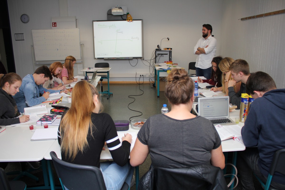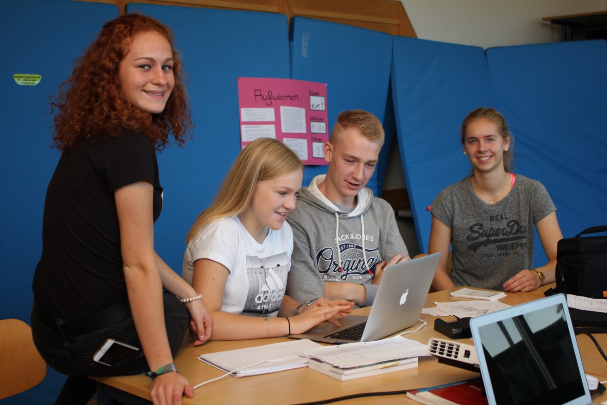 Dass die Liebfrauenschule im Bereich des digitalen Lernens auf der Höhe der Zeit ist, war vielerorts sichtbar, zum Beispiel in den drei EDV-Räumen und in zahlreichen Klassen- und Fachräumen, in denen das digitale Whiteboard die grüne Tafel ersetzt hat. Aber auch methodisch wurde zeitgemäßer Unterricht demonstriert. So arbeiteten angehende Abiturienten des Leistungskurses Erziehungswissenschaft in einem Klassenraum mit vernetzten schuleigenen MacBooks, um anschließend rege ihre Ergebnisse zu diskutieren.