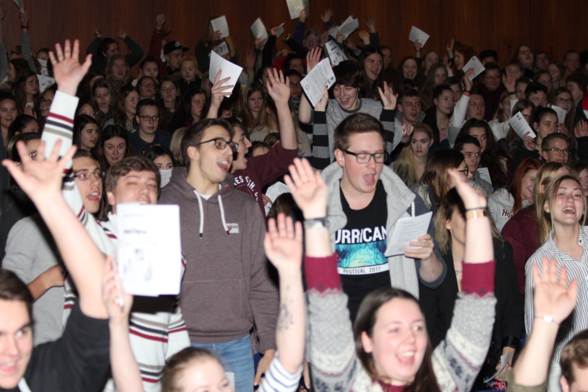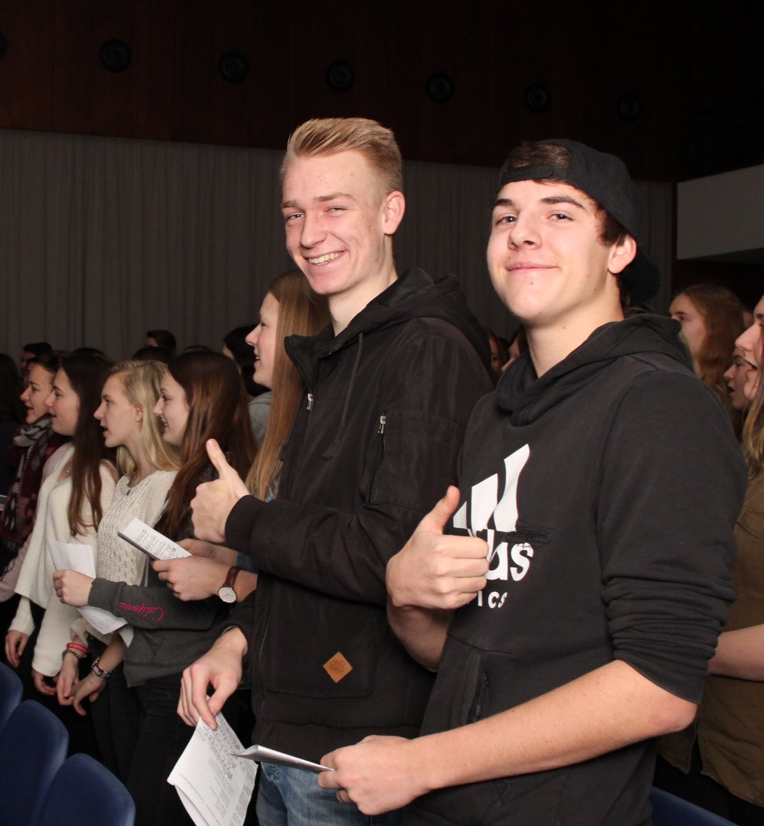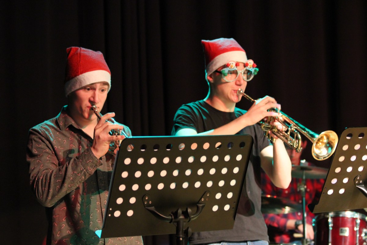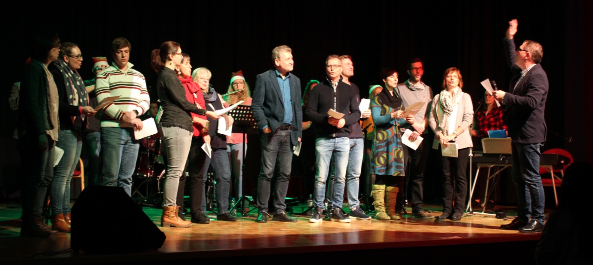 Alle Jahre wieder ….. – ja, so heißt nicht nur ein bekanntes Weihnachtslied. Alle Jahre wieder lädt unser Musiklehrer Herr Baumgärtner mit einer Gruppe engagierter Sängerinnen und Musiker am letzten Tag vor den Weihnachtsferien zum Offenen Singen in die Aula ein. Das ist stets eine wunderschöne Einstimmung auf das Weihnachtsfest! Auch die Lehrer mussten dabei wie jedes Jahr in unterschiedlichen Sprachen Weihnachtslieder vortragen. Das schien den Schülern auch dieses Mal wieder zu gefallen. Mit einem Lied gedankt wurde in diesem Rahmen auch Herrn van Essen für seine 25-jährige Tätigkeit als engagierter Schulleiter, der für alle Belange stets ein offenes Ohr hat.