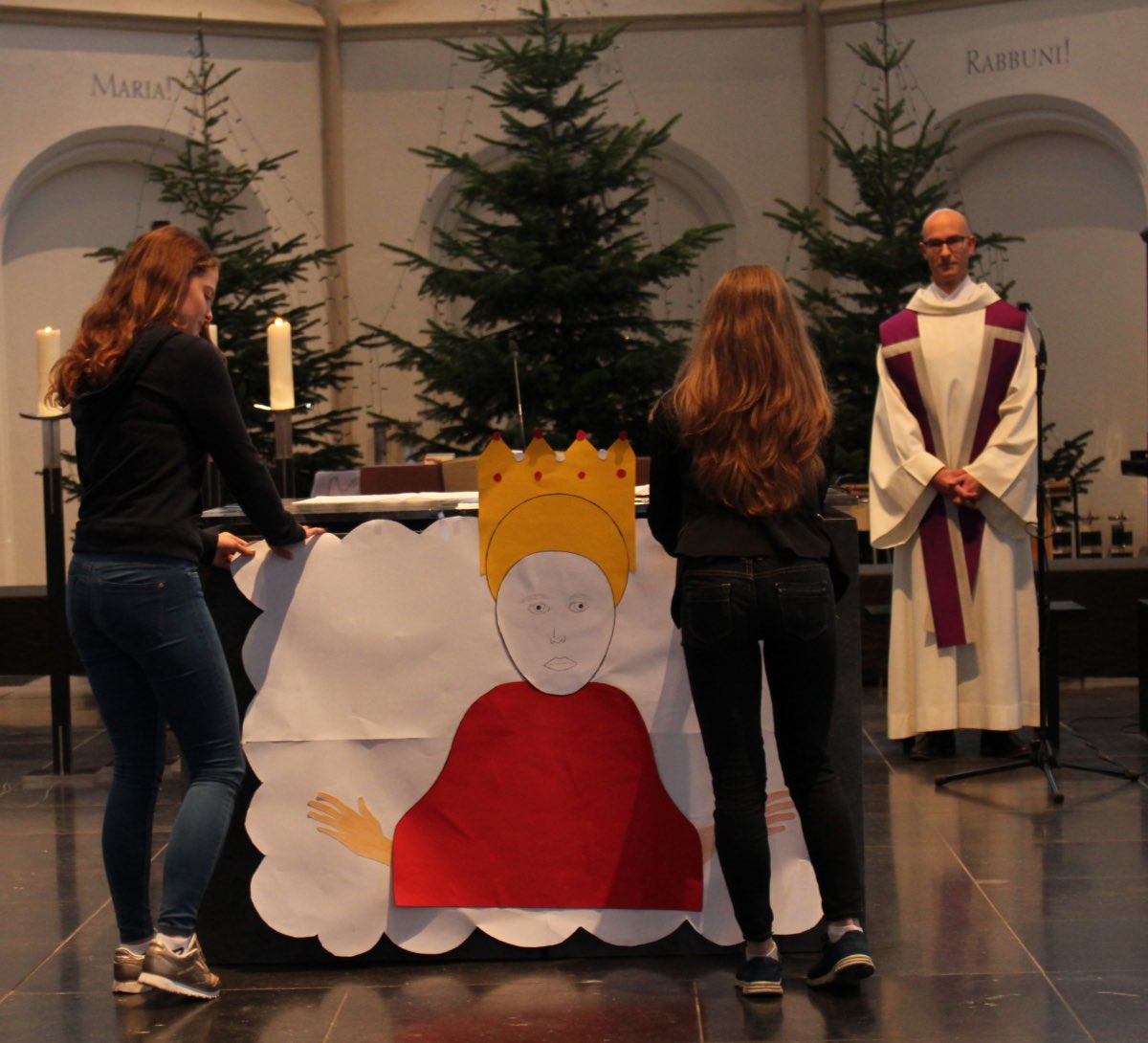 Den Abschluss bildete ein Festgottesdienst in der Maria-Magdalena-Pfarrkirche mit Kaplan Olding, in dem die eigentliche, tief gehende Bedeutung des Weihnachtsfestes im Mittelpunkt stand. Die Kollekte war für den Verein Amani-Kinderdorf, der seit vielen Jahren von unserer Schulgemeinschaft unterstützt wird. Unsere Lehrerin Marlies Brückner verdeutlichte dabei anschaulich, welche große Bedeutung eine finanzielle Unterstützung vom Niederrhein hat.