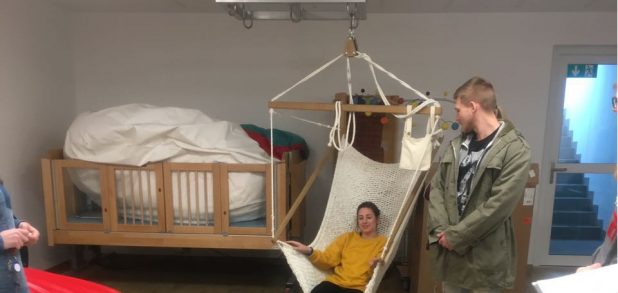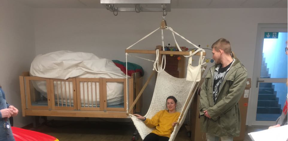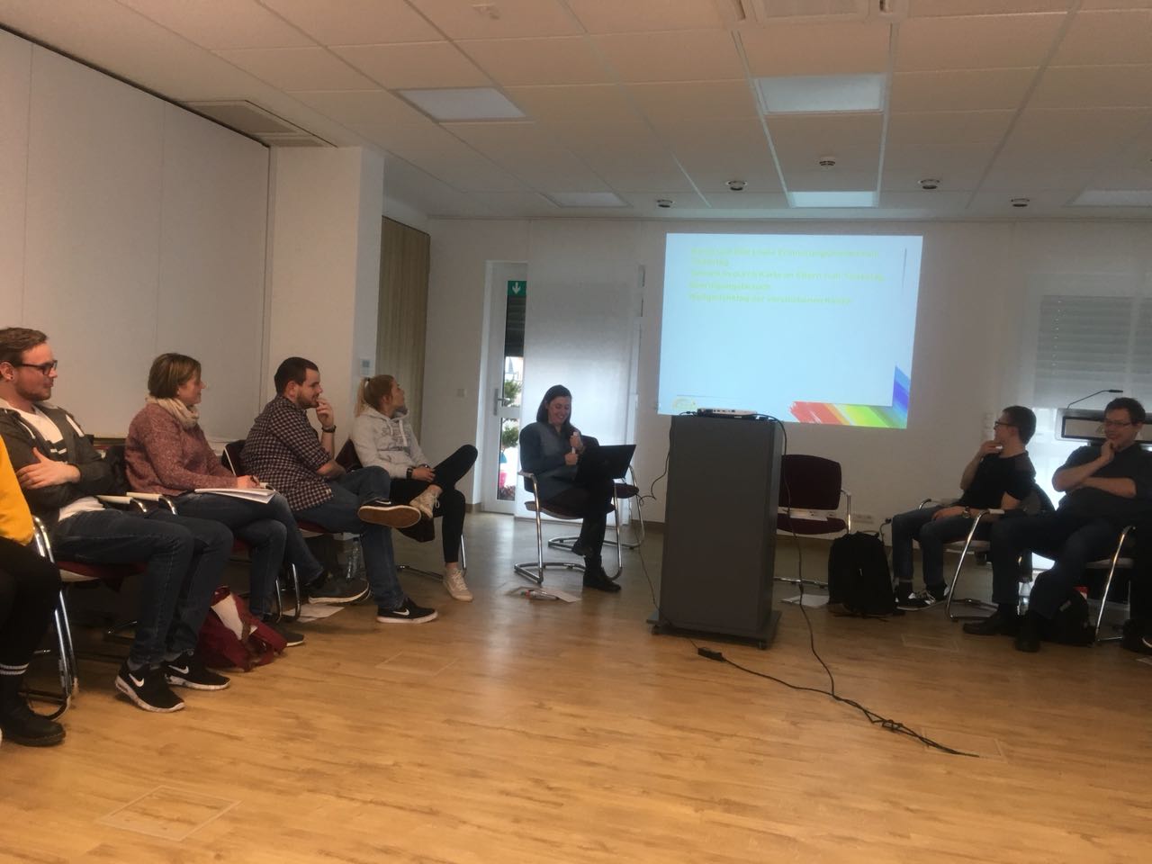 Unsere Referentin Frau Vanessa Mertens, staatlich geprüfte Heilerziehungspflegerin und Sozialpädagogin/Sozialarbeiterin (BA), gehört dem Familien- und Trauerbegleitungsteam im Hospiz Regenbogenland an und ist insbesondere für die Begleitung von Geschwistern der betroffenen Kinder und für die so genannte Trauerarbeit mit ihnen verantwortlich. Sie gestaltete unseren Besuch im Regenbogenland und führte uns zu Beginn durch die Einrichtung. In einer offenen Runde erklärte sie uns, dass ihre Arbeit für sie nicht belastend sei, wie immer alle denken, sondern vielmehr sehr erfüllend, da sie versucht, den Kindern und Jugendlichen im Angesicht der absehbaren Lebensbegrenzung eine schöne Zeit zu ermöglichen und ganz viel dafür zurückbekommt.