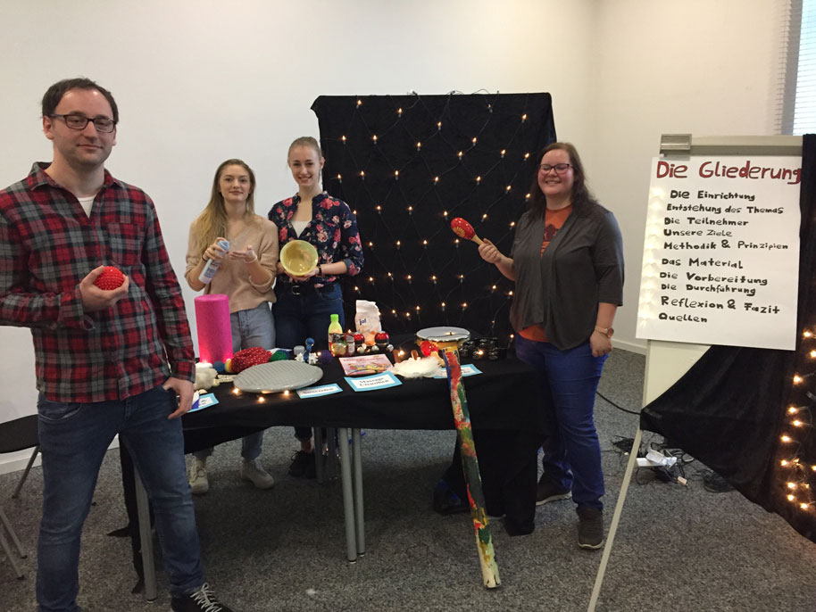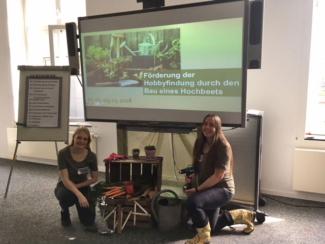 Während beispielsweise eine Projektgruppe zur Förderung der Hobbyfindung gemeinsam mit Bewohner/innen des Wohnheimes der Lebenshilfe in Bedburg-Hau ein Hochbeet gestaltete und einen dazugehörigen „Pflegeplan“ unter Berücksichtigung der individuellen Ressourcen und Defizite entwickelte, förderten andere Studierende den Gruppenzusammenhalt von Bewohner/innen der Wohnanlage St. Bernardin in Sonsbeck-Hamb durch die gemeinsame Herstellung von Fühlwänden für einen neu einzurichtenden Snoezelraum.