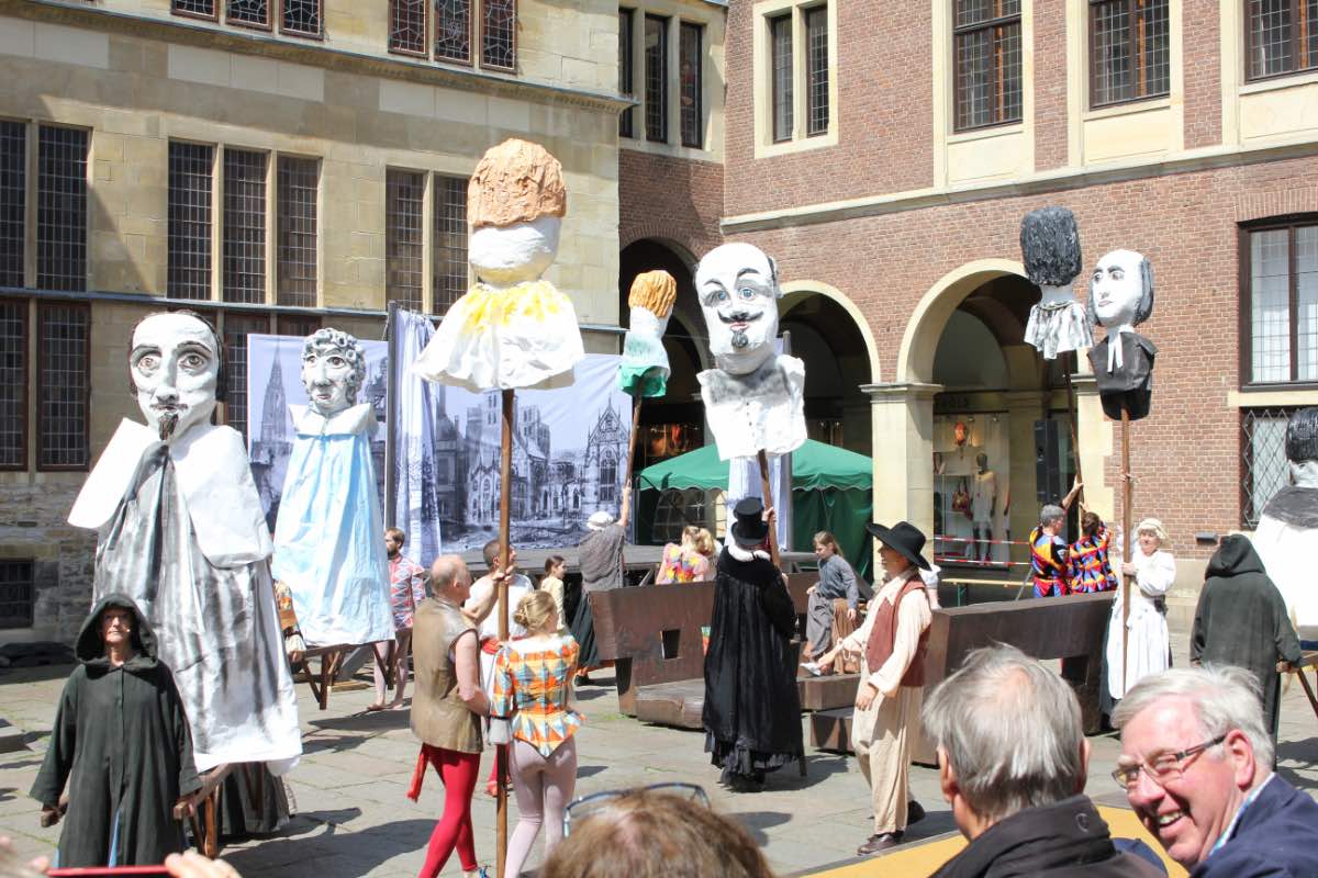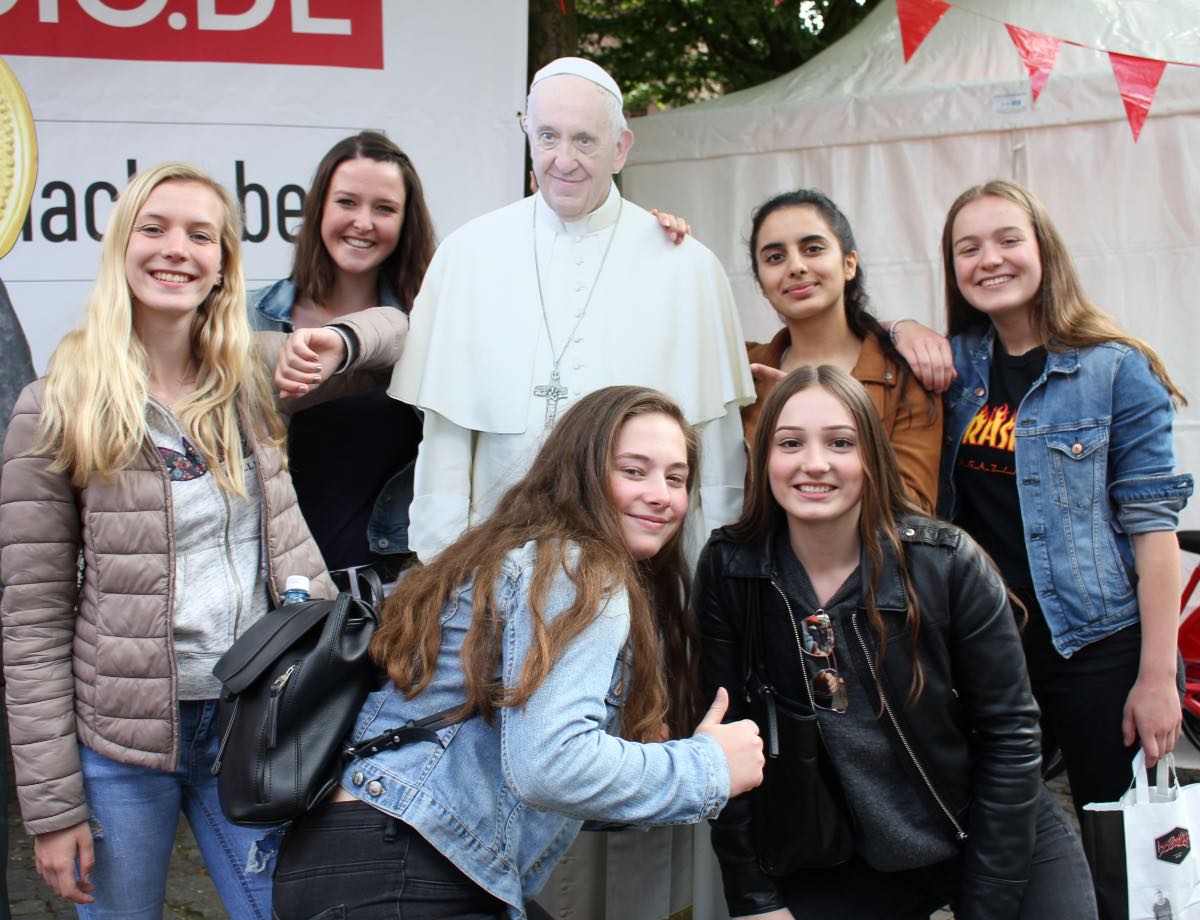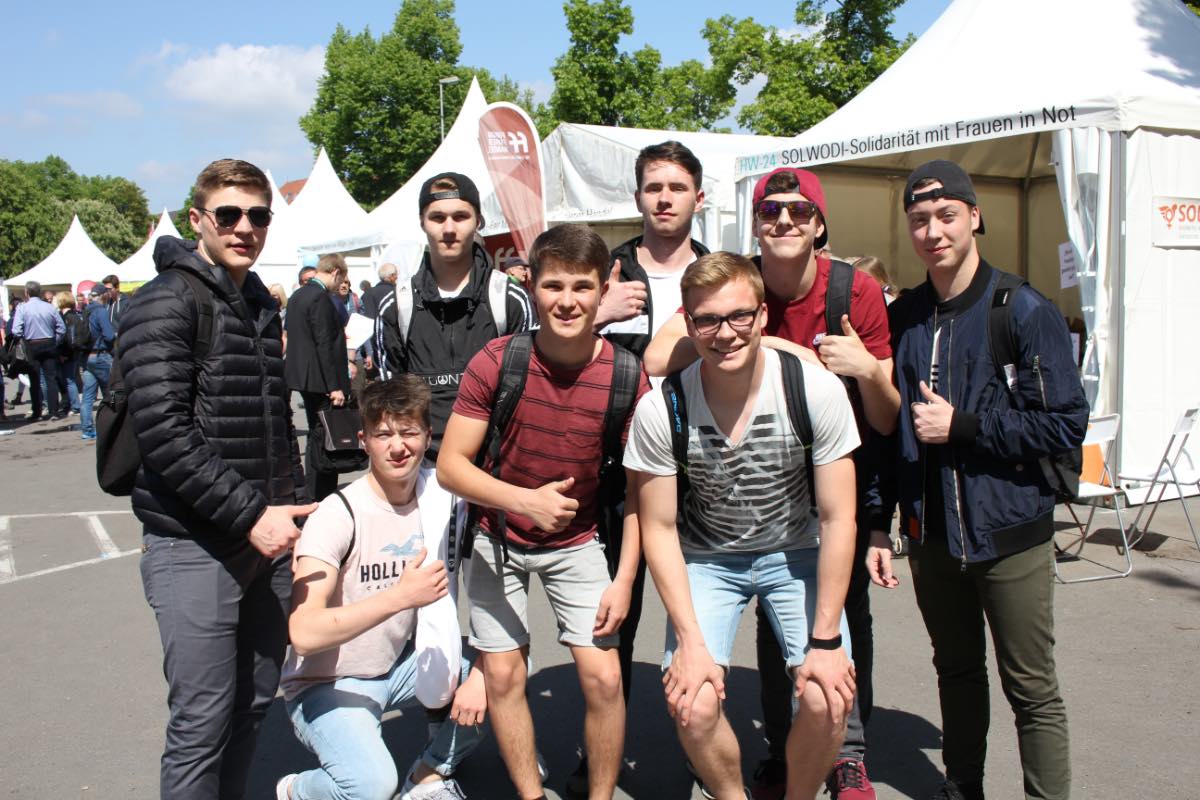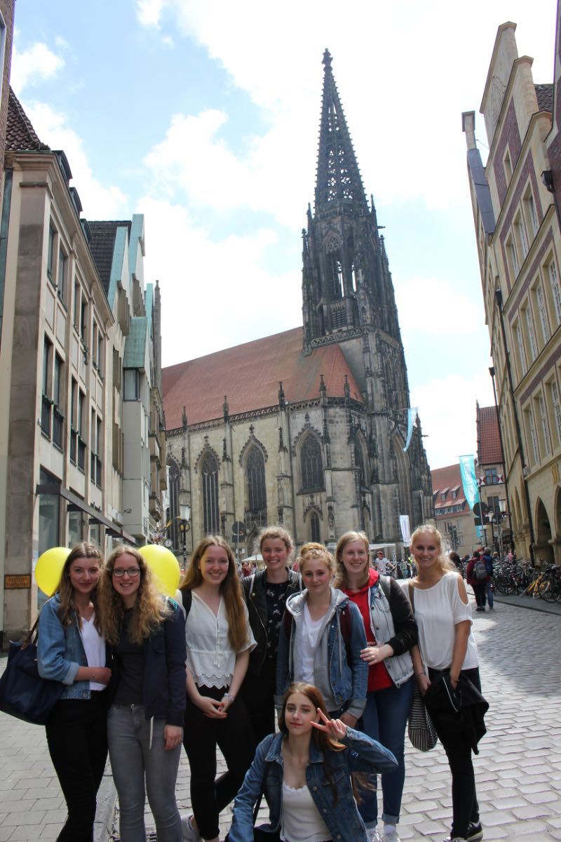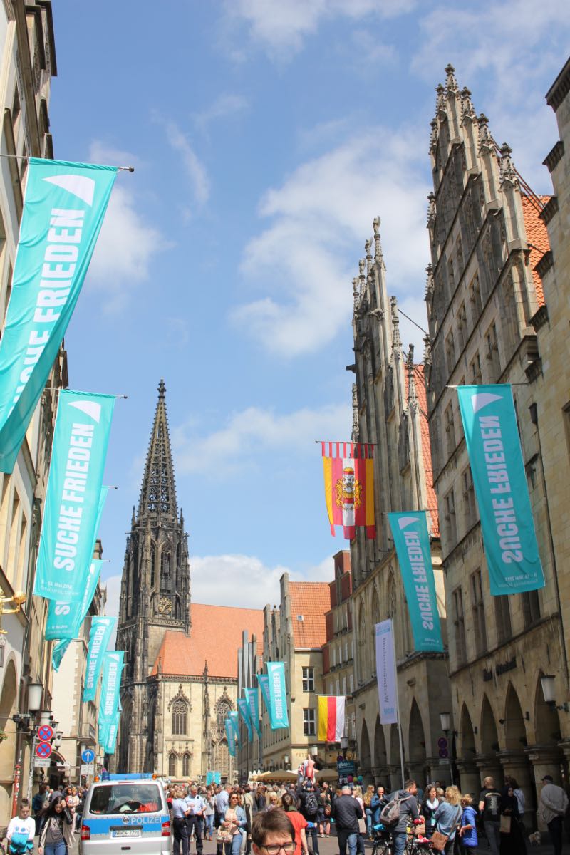 50000 Dauergäste waren gekommen und einige Zehntausend Tagesgäste ebenso. Bundespräsident Frank-Walter Steinmeier sprach zur Eröffnung und Bundeskanzlerin Angela Merkel stellte sich den Fragen. Hunderte namhafte Persönlichkeiten aus Politik und Gesellschaft diskutierten in einer großen Vielzahl thematisch unterschiedlicher Podien. Die schmucke Innenstadt platzte bildlich aus allen Nähten. Und mittenmang dabei waren die Schülerinnen und Schüler der Liebfrauenschule. Am 11. Mai hatten sie sich mit Bussen nach Münster zum 101. Katholikentag aufgemacht. Sein Thema lautete: Suche Frieden.