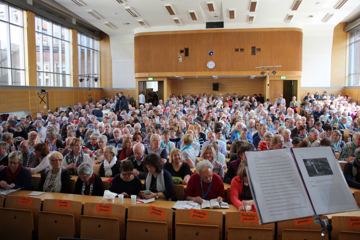 Während Angela Merkel unter starkem Applaus im Messe- und Congress-Centrum Halle Münsterland den einseitigen Ausstieg der USA aus dem Atomabkommen mit dem Iran aufs Schärfste verurteilte und jeden einzelnen dazu aufrief, gerade angesichts der weltweiten schlimmen Bilder von Krieg und Leid nicht abzustumpfen, waren die Katholikentagsgäste in der ganzen Stadt zu einer Vielzahl von Veranstaltungen eingeladen, die im fast 700 Seiten starken Programmbuch aufgelistet waren und für die große bunte Vielfalt des katholischen Lebens und auch seine Offenheit für unterschiedliche Meinungen standen.
