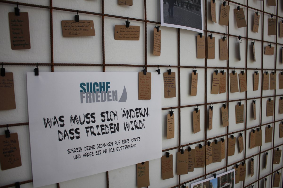 Mit zwei Angeboten brachte sich auch die Liebfrauenschule bei dem Katholikentag ein, unter anderem bei einer Installation, in der von Schülerinnen und Schülern verfasste Friedensbriefe die Sehnsucht nach einem friedvollen Zusammenleben zum Ausdruck brachten. Des weiteren betreuten sechs Studierende der Fachschule für Sozialpädagogik über den gesamten Zeitraum des Katholikentages die Kinderbetreuung von Zwei- bis Neunjährigen, für die sie ein umfangreiches Spiele-, Bastel- und Kreativrepertoire über Wochen vorbereitet hatten.