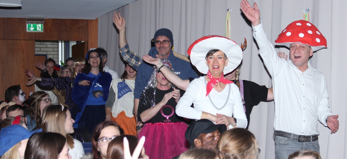 Unabhängig davon, für wen man hielt: Die Altweiberfeiern gingen wie im Flug um, Schülerinnen und Schülern sowie Lehrerinnen und Lehrern gefiel es. Der SV und den SV-Lehrern Niklas Roeling und Tobias Bruch sei Dank! Liebfrauenschule – helau, Altweiberfeier – helau, SV – helau!