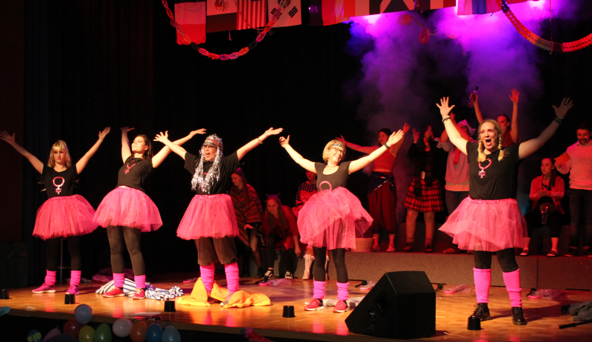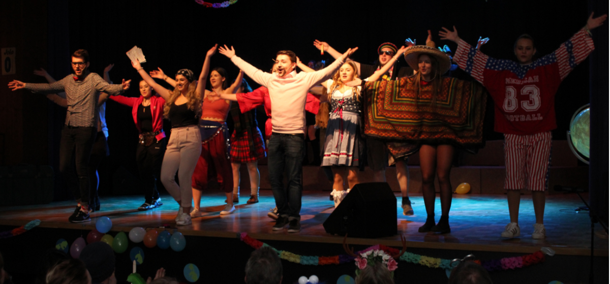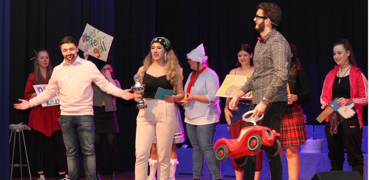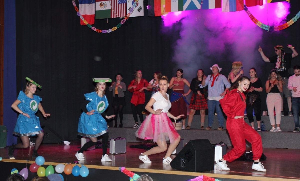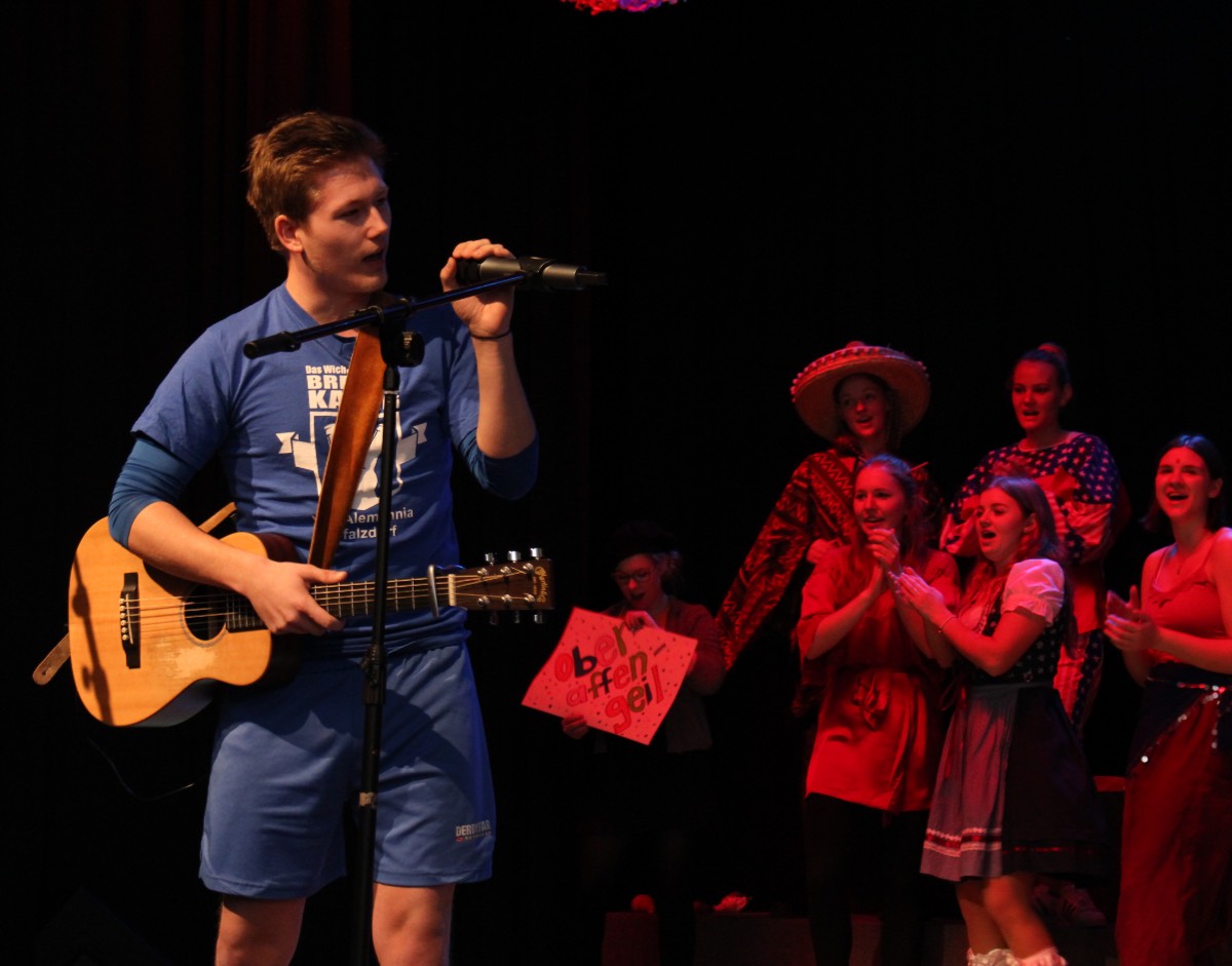 Die SV machte es möglich: An Altweiber waren Joko und Klaes in unserer Aula, um das Duell um die Welt zu spielen…..Joko, unterstützt durch ein Lehrerteam, und Klaes, der auf die Schülerinnen und Schüler bauen konnte. In Usbekistan, in der Türkei, in Russland, in Frankreich, in den Niederlanden und sonst wo in der weiten Welt hatten sich die beiden Entertainer Anregungen für ihre Aufgaben besorgt und gleichfalls unterhaltsame Programmpunkte, sei es Tanz, sei es Gesang organisiert. In den Challenges mussten Karnevalssongs erraten, angebliche Delikatessen verkostet und Heiratsanträge geschmiedet werden – kein leichtes Unterfangen für die beiden Teams. Insgesamt gingen die Wettbewerbe unentschieden aus. In der ersten Altweiberfeier siegte „Team Joko“, im zweiten Durchgang „Team Klaes“.