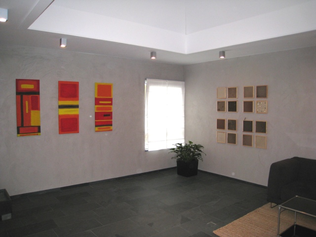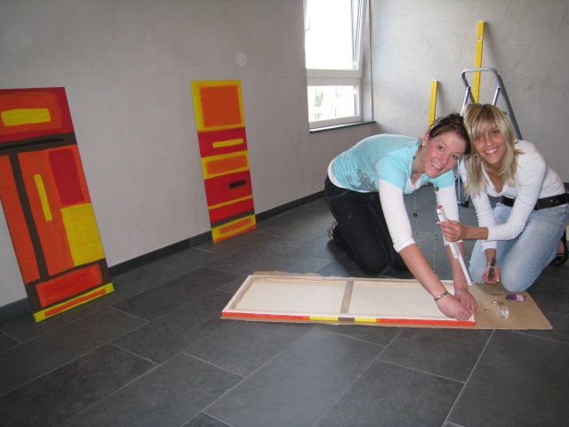 Einfühlsam wurde vor allem die Farbauswahl bedacht. Kunstlehrer Marc Baum: „Wir wollten Wärme und Lebendigkeit erzeugen.“ Dezent abgetönte Farben in rot, orange, gelb und braun bestimmen daher die drei Leinwände, die nun die Wände zieren und auf den eintretenden Menschen einladend wirken.