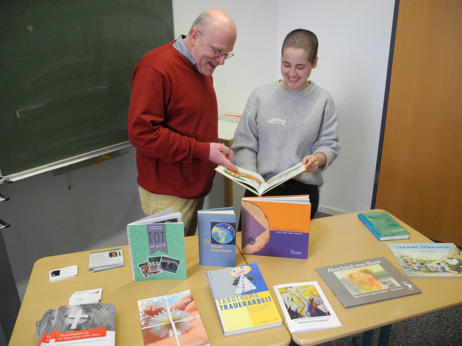 Am Ende bedankten wir uns bei Herrn Ueberfeld für die sehr gefühlvolle Gestaltung der Doppelstunde und den Einblick in seine praktischen Erfahrungen zu einem so wichtigen und für unsere Arbeit und unser Leben bedeutsamen Thema. Weitere konkrete Informationen zur Trauerarbeit speziell im Umgang mit Menschen mit geistigen Behinderungen sollten sich im Religionsunterricht anschließen.