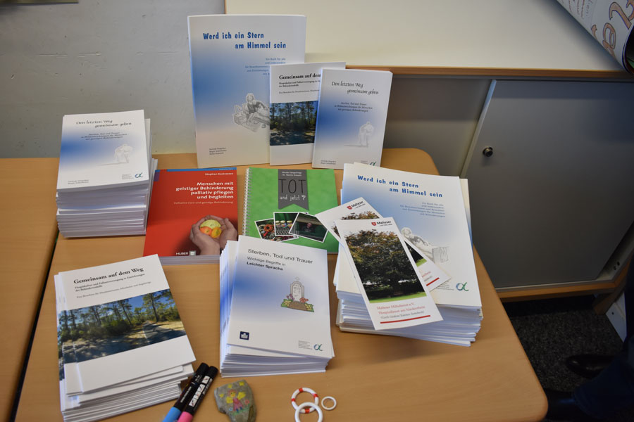 Schließlich endete dieser informative Expertinnenbesuch damit, dass wir verschiedene hilfreiche Materialien für unsere künftige Arbeit im Bereich der Betreuung von behinderten Menschen am Lebensende ausgeteilt bekamen, so zum Beispiel eine Patientenverfügung in leichter Sprache, Fachliteratur und verschiedene Flyer und Infobroschüren.