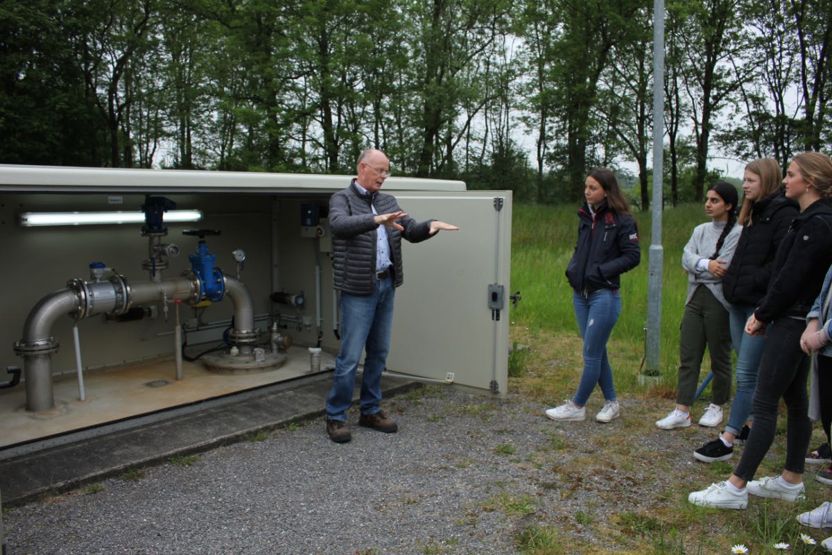 Montagmorgen, kurz vor 9, rund 2 km nördlich von Hartefeld. Bachstelzen, Blaumeisen und Buchfinken zwitschern unbekümmert zwischen Buchen, Birken und Brombeersträuchern. Mittendrin in dieser grünen Idylle steht Reiner Kallberg. Er ist nicht alleine, denn zwei Dutzend Schülerinnen und Schüler aus der AH/12F stehen mit interessiertem Blick im Kreis um ihn herum. Herr Kallberg ist Mitarbeiter der Stadtwerke Geldern, und an jenem Montagmorgen zeigt er den angehenden Abiturienten am Wasserwerk Geldern den langen Weg des aus den Tiefen geförderten Rohwassers bis hin zum hochwertigen Trinkwasser, das in Gelderns Haushalten frisch aus dem Kran sprudelt.