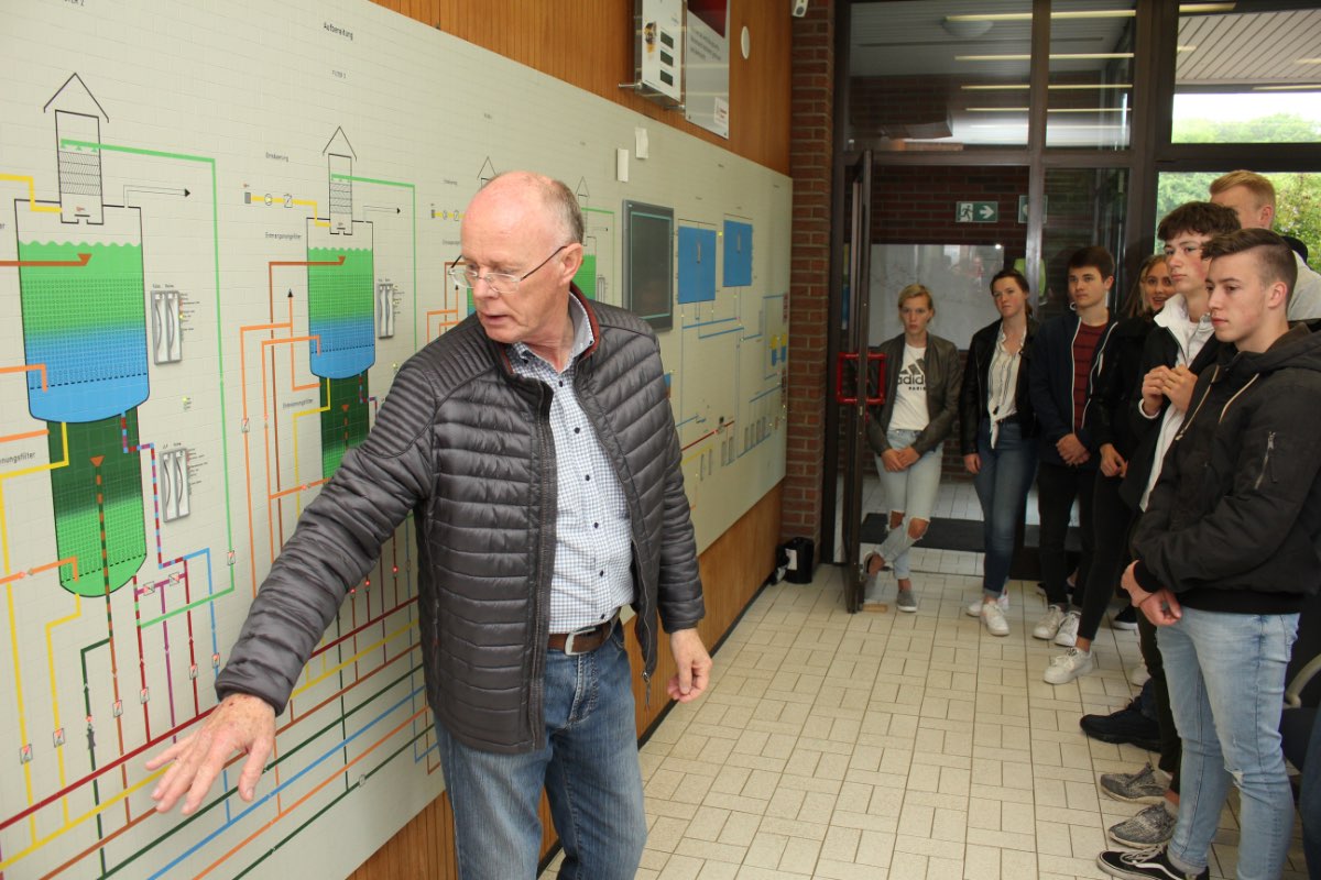 Dass es schade ist, dass dieses hochwertig aufbereitete Wasser im Haushalt auch zur Toilettenspülung und andere Dinge genutzt wird, die nicht eine so hohe Trinkwasserqualität erfordern würden, äußerten die Schüler. Dem konnte Herr Kallweit nur zustimmen. Das Problem ist aber folgendes: Wenn vom Wasserwerk neben dem exquisiten Trinkwasser auch weniger hochwertiges Brauchwasser in die Haushalte geliefert werden würde, dann müssten auch doppelt Rohre verlegt werden und müssten letzten Endes auch innerhalb eines Hauses zwei Rohrsysteme, eines für Trinkwasser und eines für gewöhnliches Brauchwasser, bereitgestellt werden. Dass dieses mit immensen Kosten verbunden ist, die der Kunde nur ungern tragen würde, war für die Schülerinnen und Schüler gut nachvollziehbar.