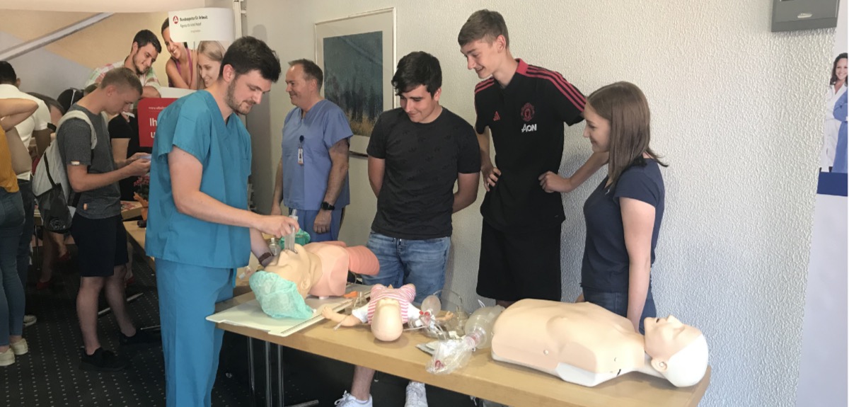 Was gehört zur Ausbildung des Hörgeräteakustikers? Wie wird man Hebamme? Was konkret macht ein Orthopädietechniker? Wie kann man sich in der Intensivpflege oder der Anästhesie weiterbilden? Alle diese Fragen und noch viele mehr wurden an den vielen Infotischen kompetent beantwortet. Eine große Vielzahl unterschiedlicher Berufe aus dem Gesundheitswesen präsentierte sich dort. Über die vielfältigen Tätigkeiten im Krankenhaus berieten natürlich auch die vier kooperierenden Hospitäler.
