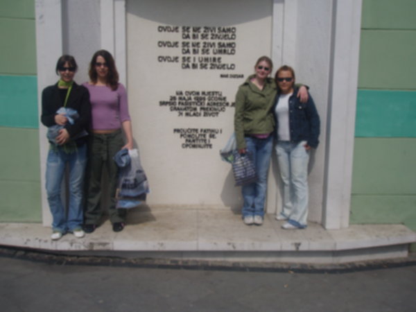 Im folgenden beleuchten wir einige von den vielen Dingen, die die SH/O in diesem vom Krieg heimgesuchten Land erleben durfte. Gräber, so weit das Auge reicht. Direkt neben dem Olympiastadion von Sarajevo befindet sich ein großer Friedhof, gefüllt mit Gebeinen von Opfern des Balkankrieges. Ihr seht einige unserer Schülerinnen der SH/O an einem Denkmal für 71 Soldaten, die genau an dieser Stelle ermordet wurden.