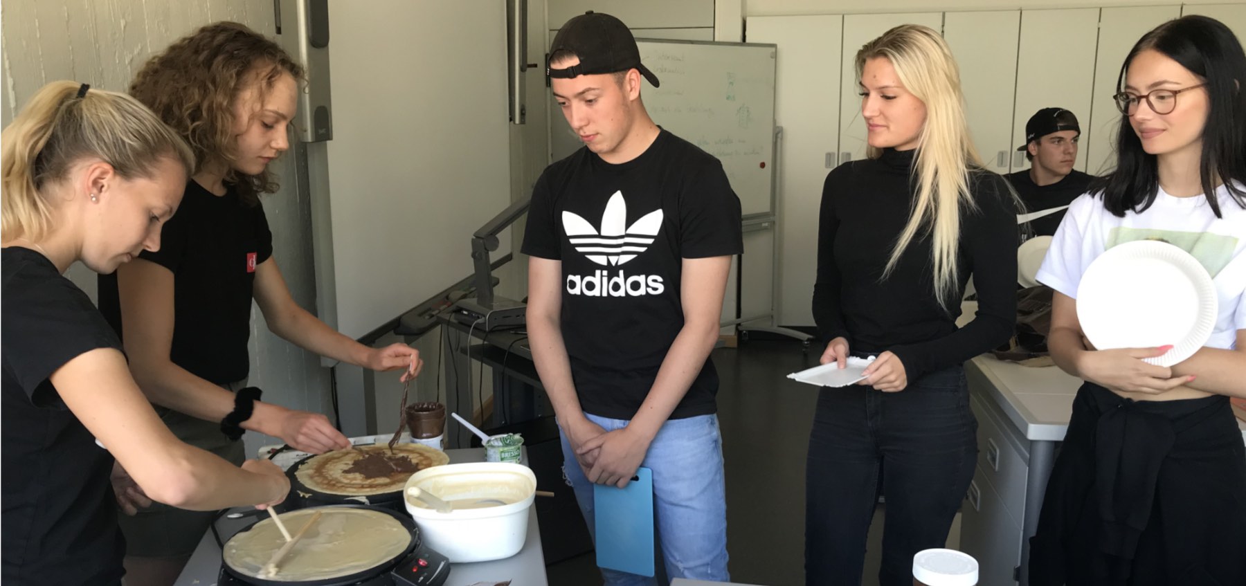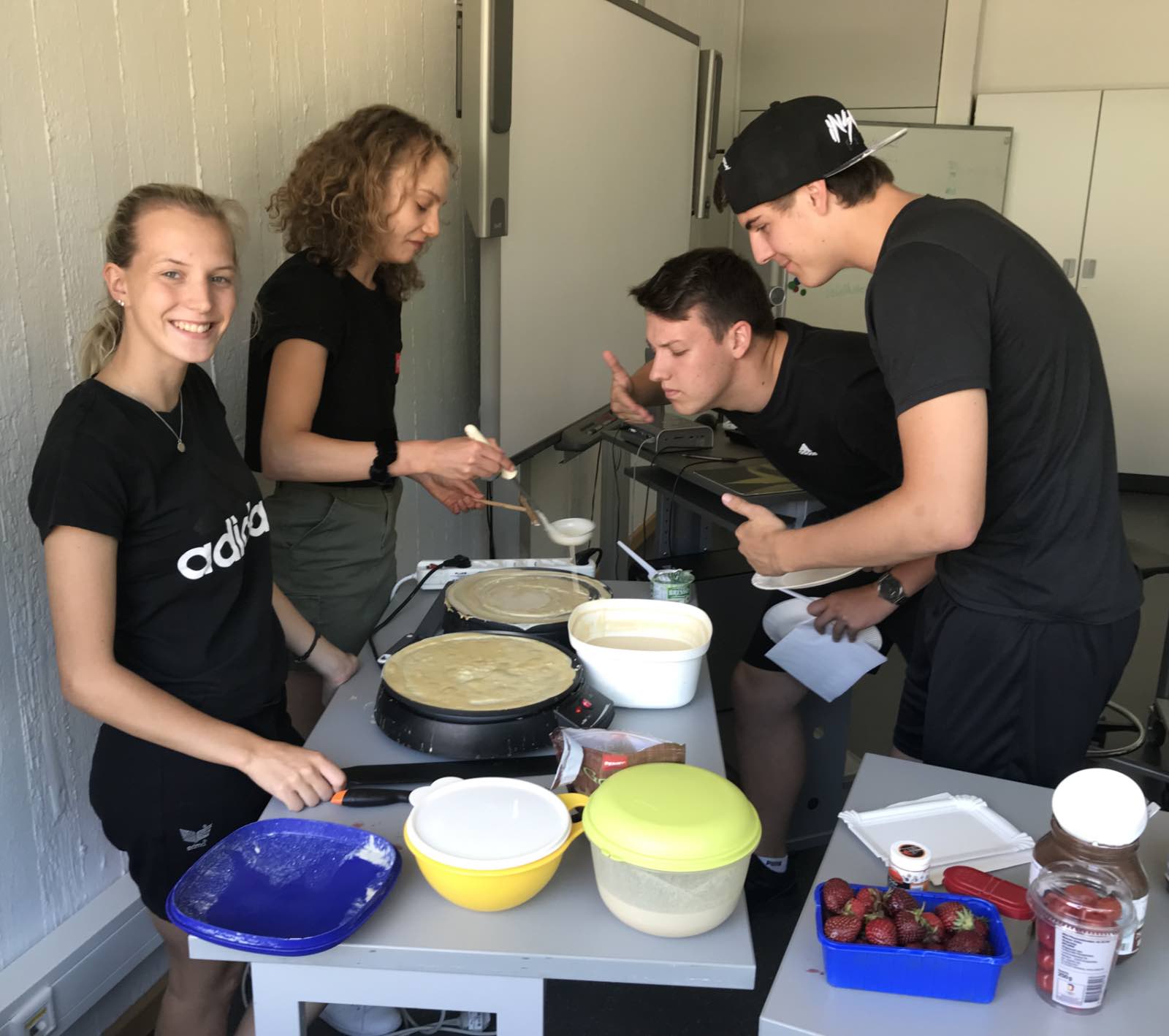 Da, wo ansonsten eher naturwissenschaftliche Experimente anstehen, startete nun der Französischkurs der AH/12 einen Feinschmecker-Versuch: Schmecken herzhafte Crêpes genauso gut oder gar noch besser als die von der Kirmes und von Stadtfesten eher bekannten süßen Crêpes mit Nutella oder Zucker und Zimt?