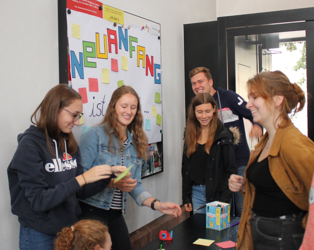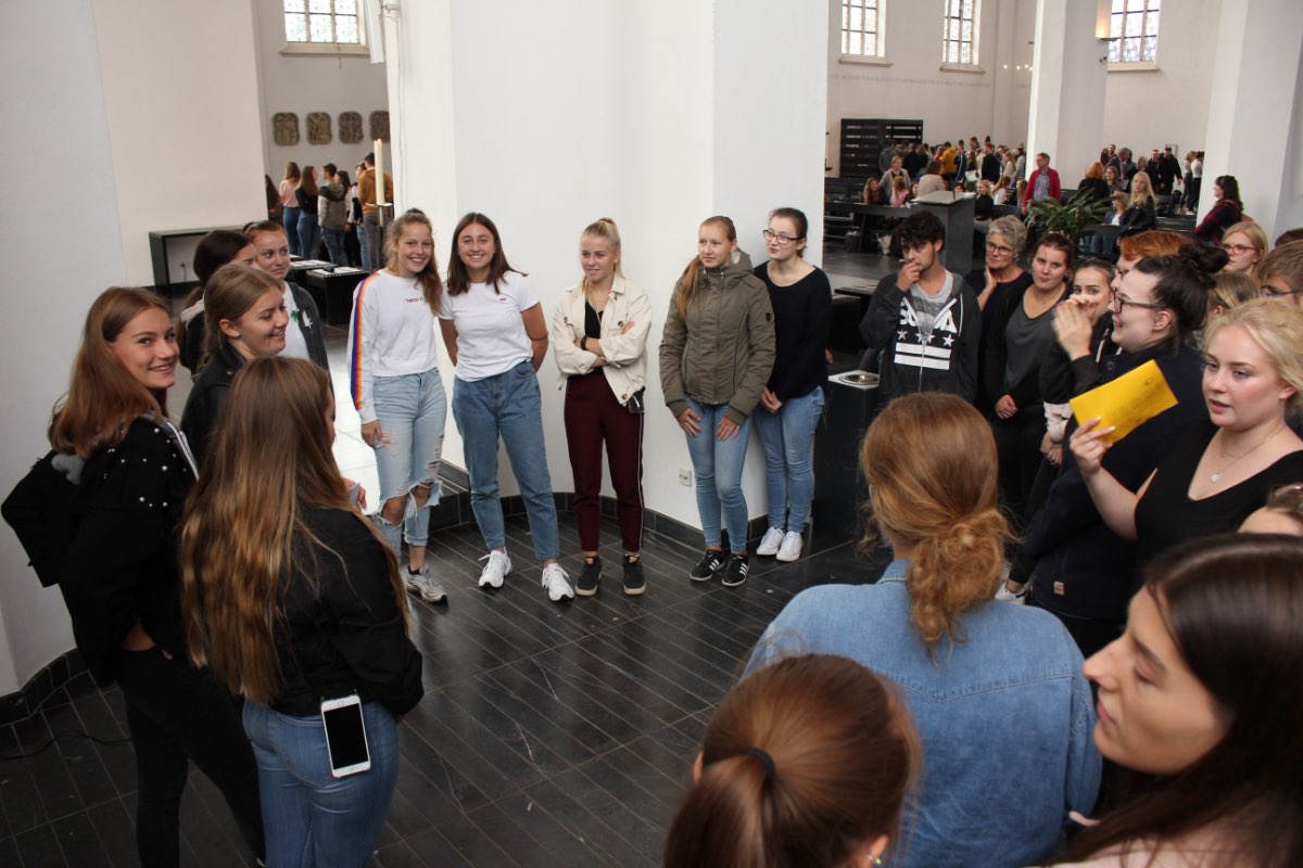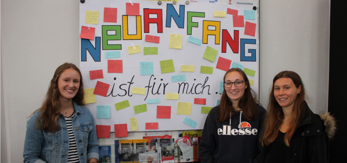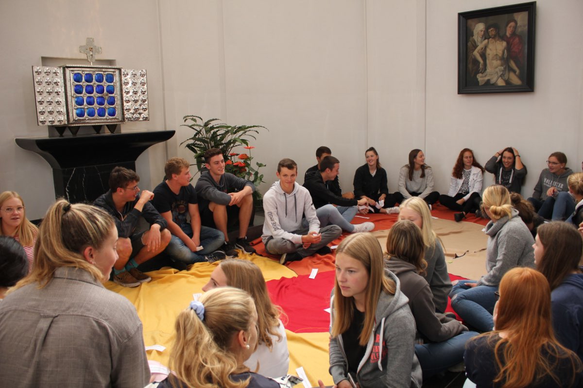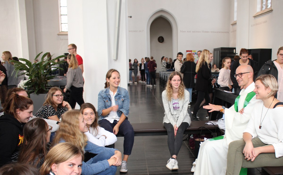 So lautete das Motto des Eröffnungsgottesdienstes, den die AH/12F vorbereitet hatte. Das Schuljahr ist neu gestartet! Egal ob als „alter Hase“ oder als „Erstie“ neu an der Liebfrauenschule, egal ob für Lernende, Lehrende oder Mitarbeiter/in – für alle ist der Schulstart ein Neuanfang. Und genau darum sollte es in diesem Eröffnungsgottesdienst gehen. Der AH/12F war es wichtig, die Gottesdienstbesucher miteinander ins Gespräch zu bringen und sie zu aktivieren. Durch verschiedene Aktionen haben sie dann auch genau das geschafft. Egal ob mit Sprühdosen, Zetteln, Musik, Videos, alten Klassengeschichten oder auch direkt mit Herrn Olding – die unterschiedlichen Stationen haben das gesetzte Ziel erreicht. Die Kirche brummte vor Gesprächen, da jeder seine eigenen Erfahrungen und Neuanfänge ins Gespräch bringen konnte.