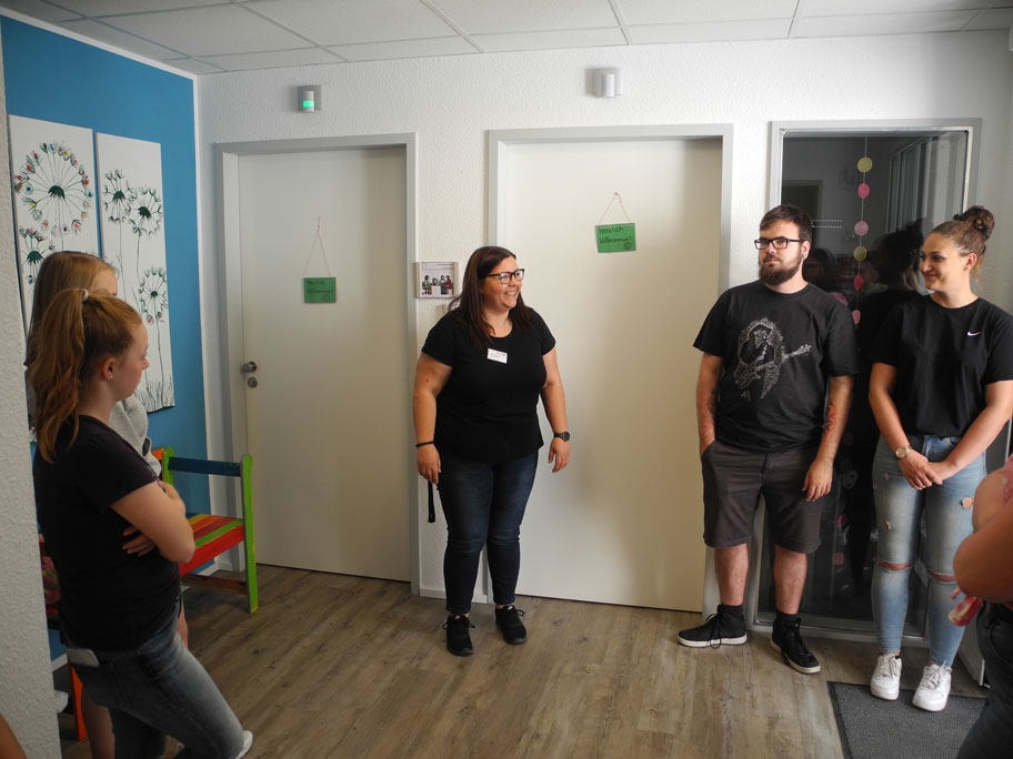 Schon direkt zu Beginn wurden wir vom Leiter der Einrichtung, Herrn Wilmsen, einer Heilerziehungspflegerin (übrigens auch „eine von uns“ aus der LFS, die schon seit über zehn Jahren dort arbeitet) und einer Bewohnerin namens Renate sehr herzlich empfangen. Vorab wurde uns die Historie der Einrichtung von der Bewohnerin, welche von klein auf dort wohnt, sehr lebendig nähergebracht.