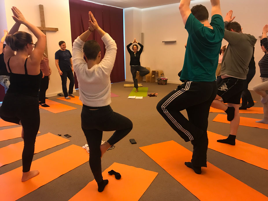 Nach einer kurzen theoretischen Einführung sammelten wir Gründe für einen Energiemangel in unserem Alltag, so z.B. Stress, Druck, schlechte Ernährung, wenig Schlaf und negative Emotionen (Angst, Wut, Frustration, Trauer etc.). Ebenso lernten wir Methoden zum Energieaufbau kennen, wobei das wichtigste ist, bei sich selbst, also in der Gegenwart, anzukommen. Darauf bezogen brachte uns Frau Raffel verschiedene Yogaübungen bei, wie z.B. den so genannten Baum – kombiniert mit vertiefter Atmung, die zur körperlichen Beweglichkeit und psychischen Entspannung führen. Die Yogahaltungen, aber auch dynamische Übungen, sind ein großer Beitrag für unsere ganze Gesundheit, wie wir erfuhren.