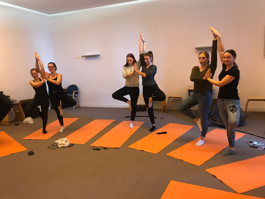 Es war eine sehr interessante Einheit, in der wir vor allem für die Bedeutung der Psychohygiene, speziell auch in unserem so besonderen sozialen Beruf in der Arbeit mit Menschen mit Beeinträchtigungen, sensibilisiert wurden und in dem wir vieles über die Möglichkeiten speziell von Yoga und Atemübungen gelernt haben – und vor allem auch praktisch üben konnten. Dabei fiel uns zudem auf, dass die Übungen häufig viel einfacher aussehen, als sie letztlich sind. Wir wurden nämlich nicht nur in unserer Beweglichkeit, sondern auch in unserer Konzentrationsfähigkeit ganz schön gefordert.