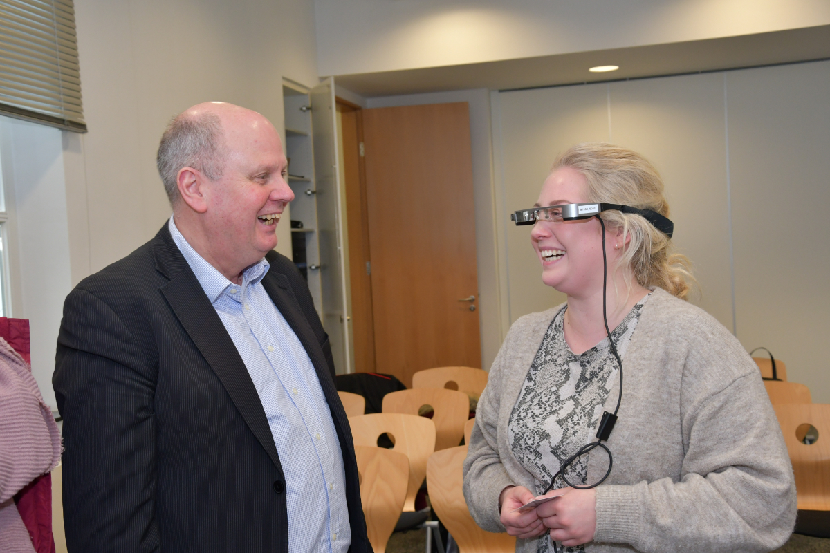 Zuvor hatte Rascher bereits einige besonders moderne Arbeitshilfen vorgestellt. Etwa einen Stift, der das Geschriebene direkt speichert oder eine Brille, die nicht nur Texte vor dem Auge erscheinen lässt, sondern über die das Geschehen mittels Kamera auch an Personen übermittelt werden kann, die weit entfernt sind. Sie sollen bei Diagnosen und in der Therapie helfen.
