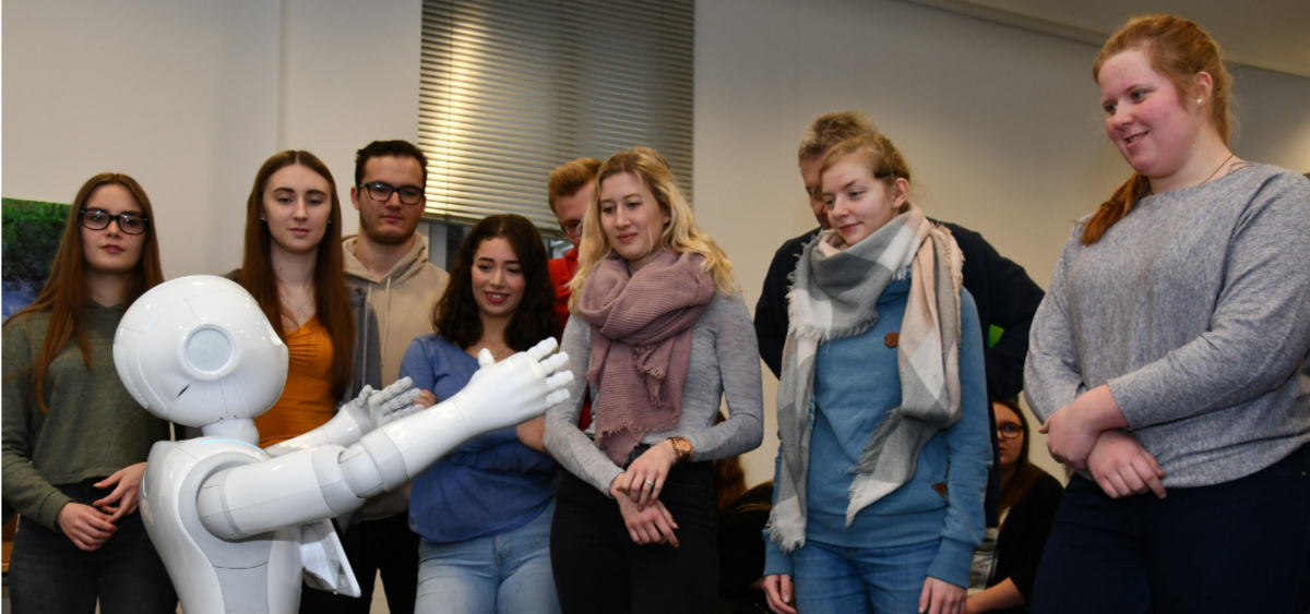 Roboter Pepper war in unserem Berufskolleg zu Besuch. Die Studierenden der Fachschule für Heilerziehungspflege informierten sich dabei über den Einsatz von künstlicher Intelligenz.