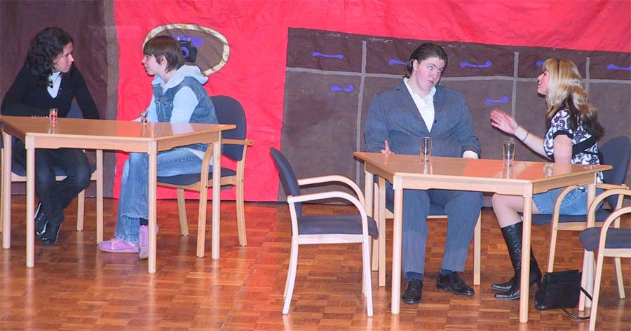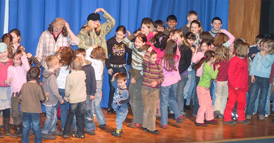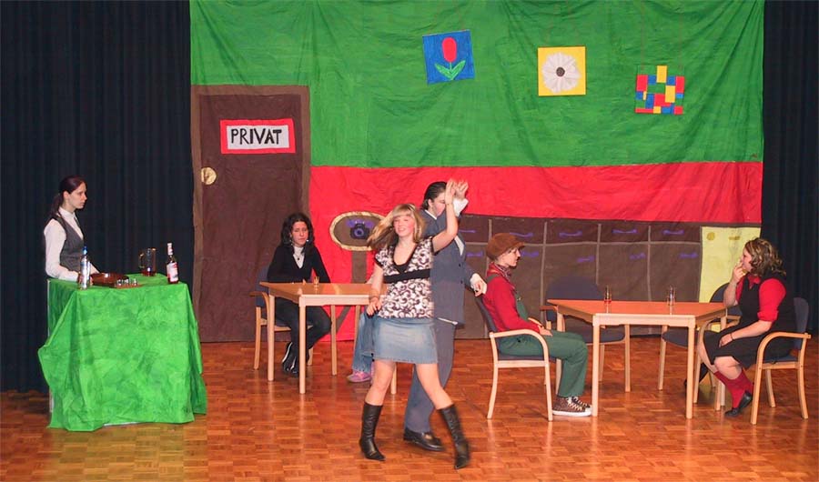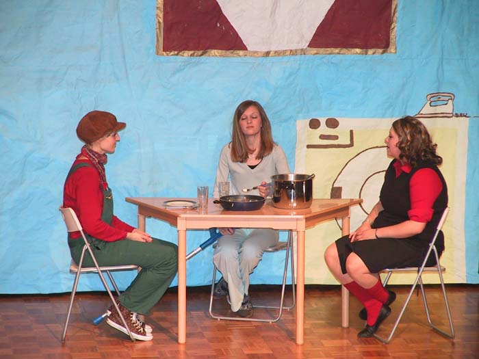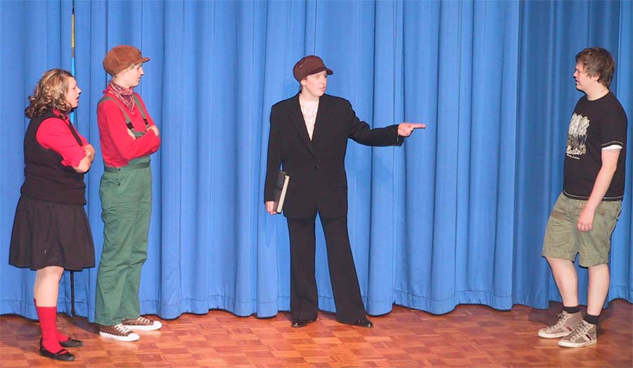 Sie ist cool, sie ist „taff“, sie hat alle Fäden in der Hand. Direkt zu Anfang, als Mira Schmoor alias „Pünktchen“ auf dem City-Roller couragiert zur Bühne fährt, ahnt wohl jeder in weiser Voraussicht, dass die Geschichte ganz im Sinne des nimmermüden Mädels mit den roten Socken ausgehen wird. Ohne Frage: Die angehende Fachabiturientin war eine gute Besetzung für die weibliche Hauptrolle von Erich Kästners Kinderroman „Pünktchen und Anton“, den die Theatergruppe unserer Fachoberschule für Sozial- und Gesundheitswesen im März 2008 gleich sechs Mal vor rund 1000 Zuschauern in der Schulaula aufführte.