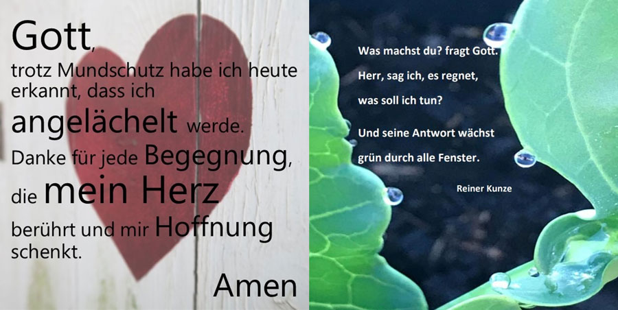 Wir feiern am Donnerstag Christi Himmelfahrt. Bevor Jesus zum Himmel auffährt, segnet er seine Jünger und gibt ihnen einen Auftrag. Sie sollen Zeugen sein, Zeugnis ablegen, sich versöhnen mit allen widrigen Umständen und eine große Hoffnungsbotschaft verkünden: Alle Menschen sollen erfahren, dass Jesus für ihre Sünden gestorben ist, damit sie leben können. Für heute nehme ich mir vor, mich gesegnet zu fühlen und mich mit den Umständen zu versöhnen. Im Bezug auf Menschen gelten für mich die Worte von Weizsäckers: „Es ist normal, verschieden zu sein.“ An Christi Himmelfahrt nehme ich mit in die Coronakrise: Es ist normal, dass nichts normal ist. Gott, segne uns.